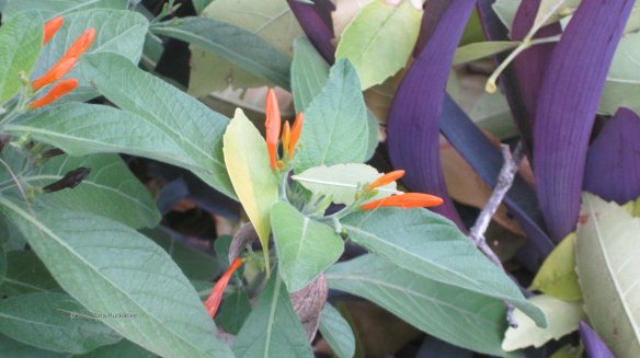 Another surprise is that the Mexican Honeysuckle (Justicia spicigera) didn’t suffer at all.  It will eventually succumb to a harder freeze, but for now, there are still cheerful, bright orange blooms gracing the garden.