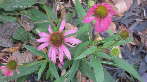 Purple Cone Flower (Echinacea purpurea) will sometimes bloom all winter in my gardens.  Currently, this is the lone group in bloom.  Actually, I pruned three other plants before the freeze to enjoy in the house, but I missed these little guys.  So glad I did.
