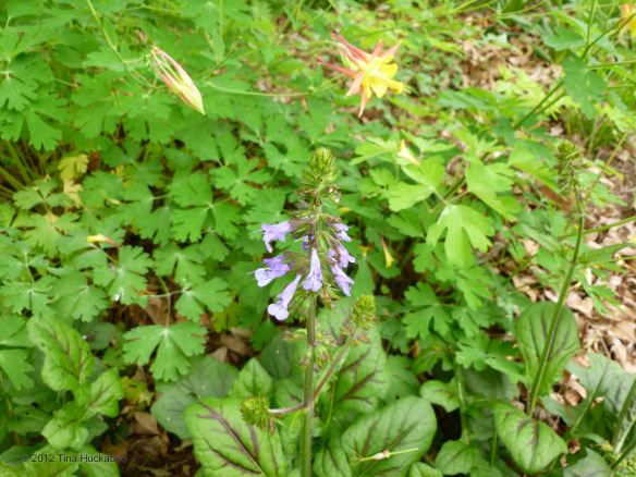 Nice companions are the Yellow Columbine (Aquilegia chrysantha) and Lyre-leaf Sage (Salvia lyrata).  The Columbine is probably a hybrid cross between the A. chrysantha  and A. canadensis.  Note the blush of pink–the true Yellow Columbine wouldn’t have any pink.
