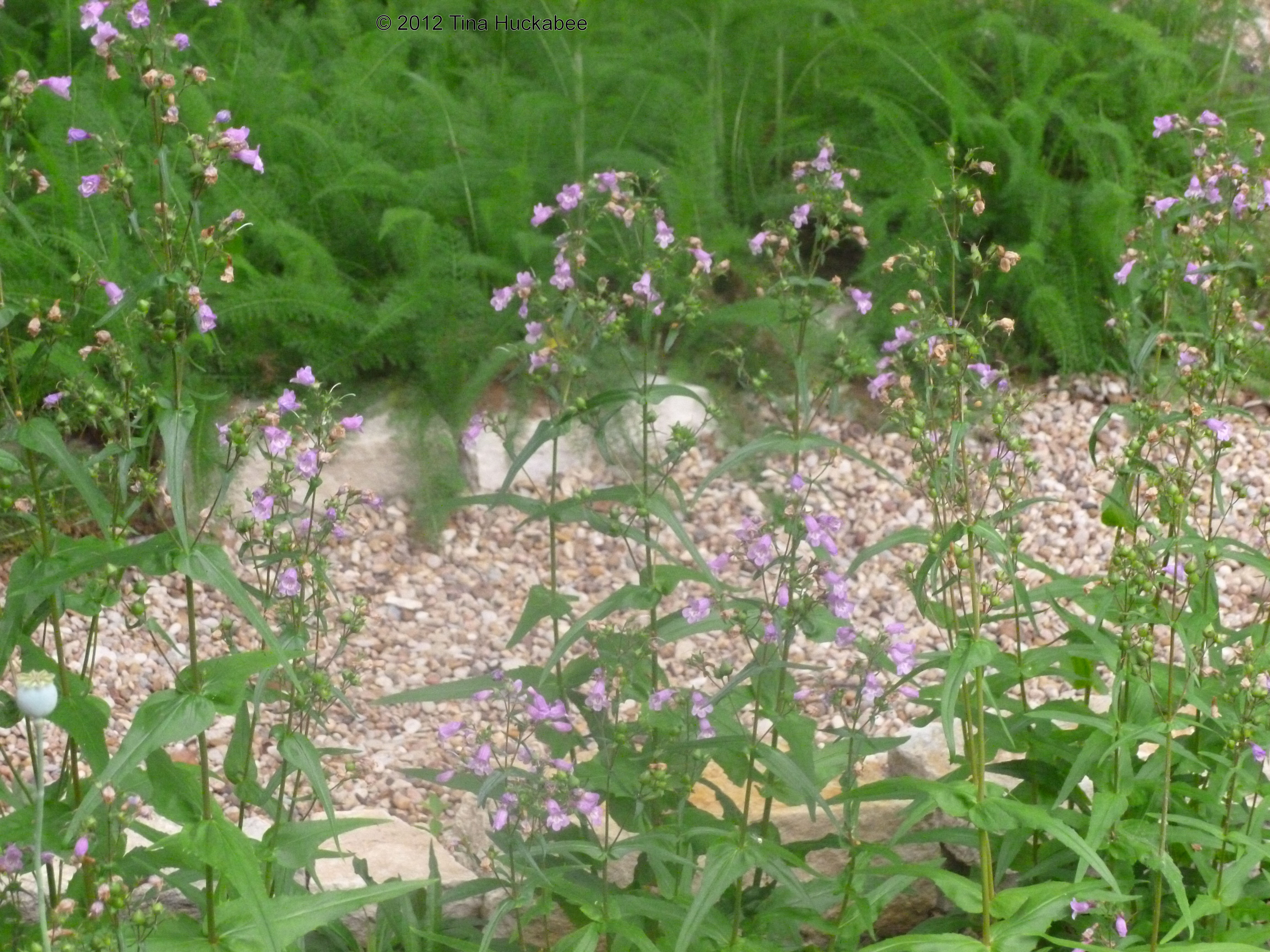 The Gulf Coast Penstemon (Penstemon tenuis), with its dainty, lavender blooms, is lovely planted in groups of three or four.  A favorite of the honeybee, it re-seeds with abandon!