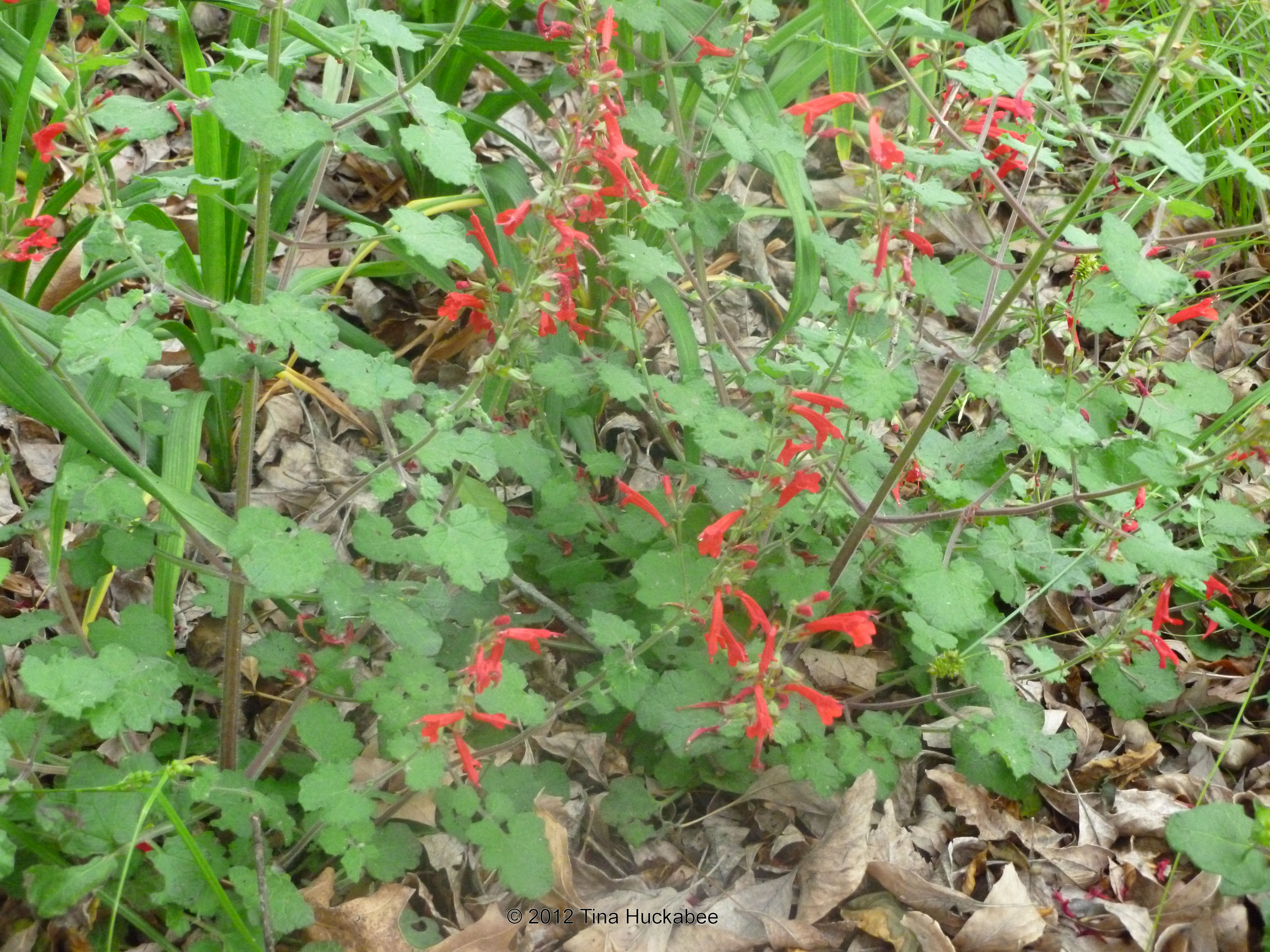With its scarlet blooms, the Cedar Sage (Salvia roemeriana) brightens shady spots in  Central Texas gardens during spring.