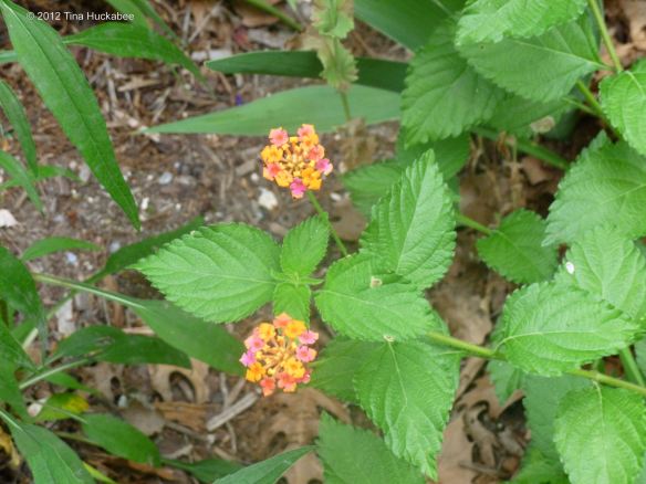 Sometime in the last year or so, a nice bird planted this Texas Lantana (Lantana urticoides) and these are its first blooms.  These have a little pink in them, so I’m guessing they’re actually a hybrid.