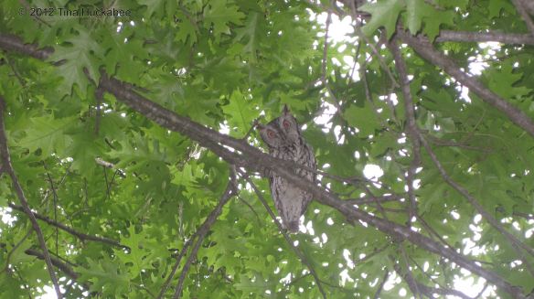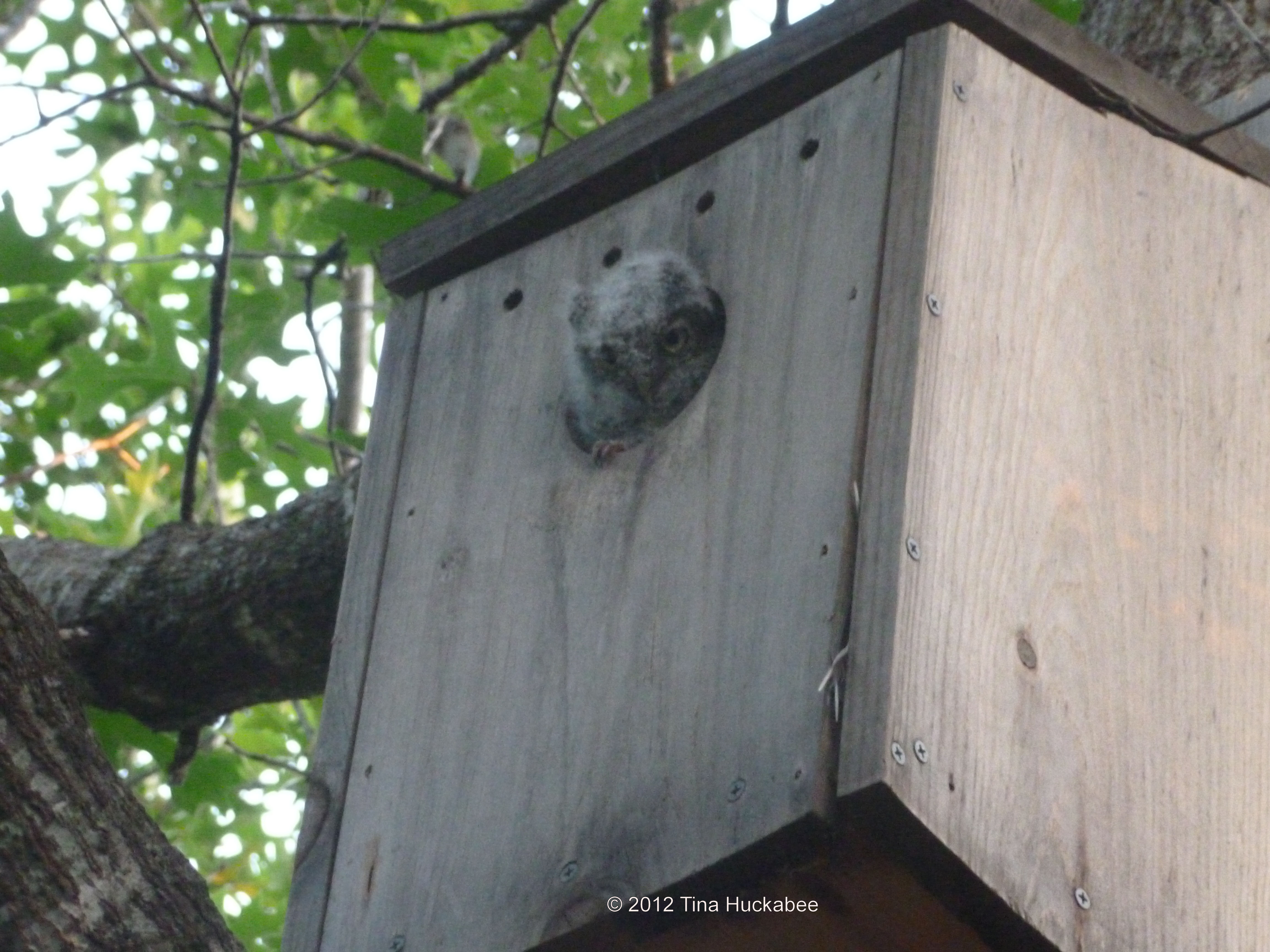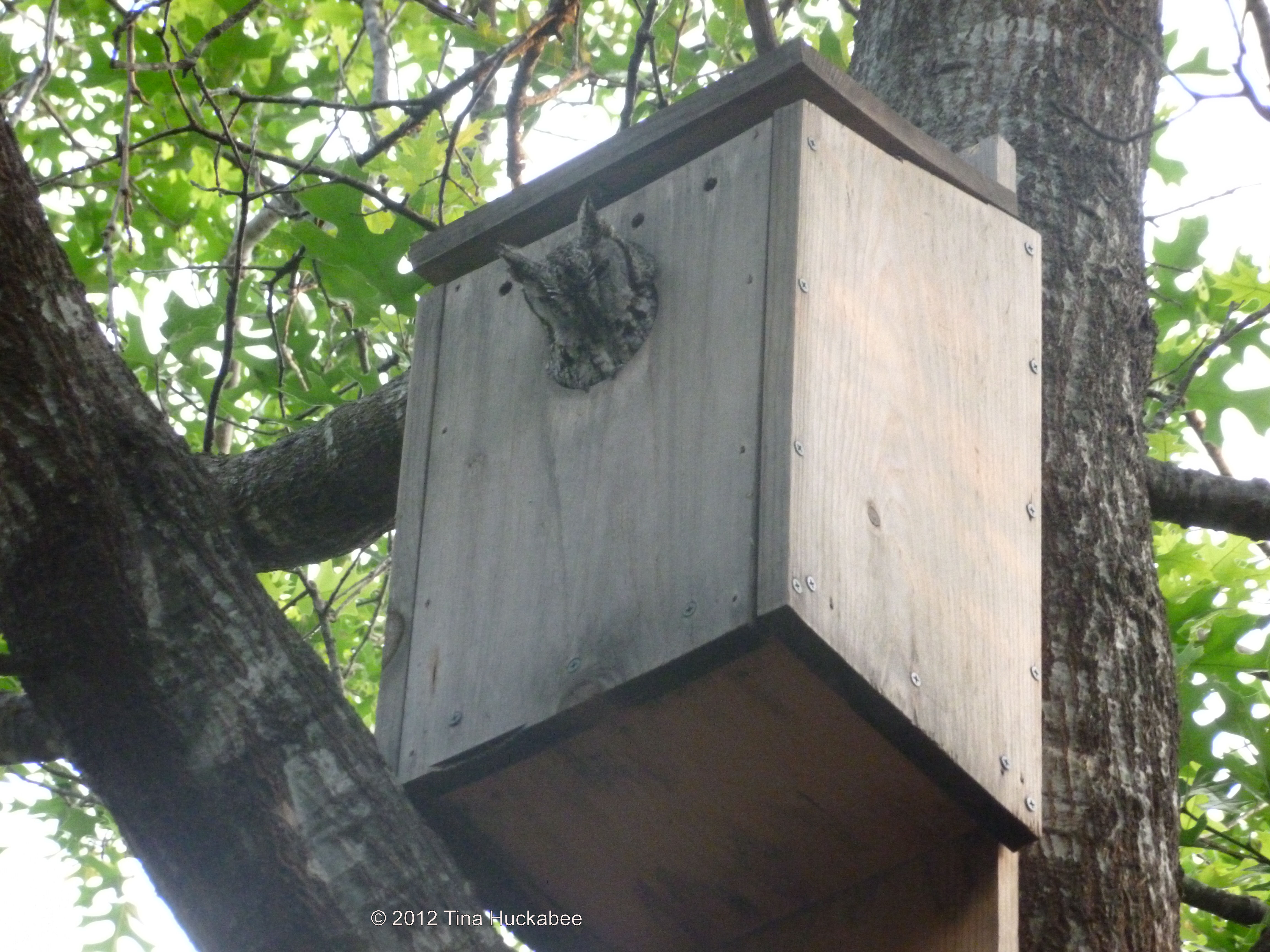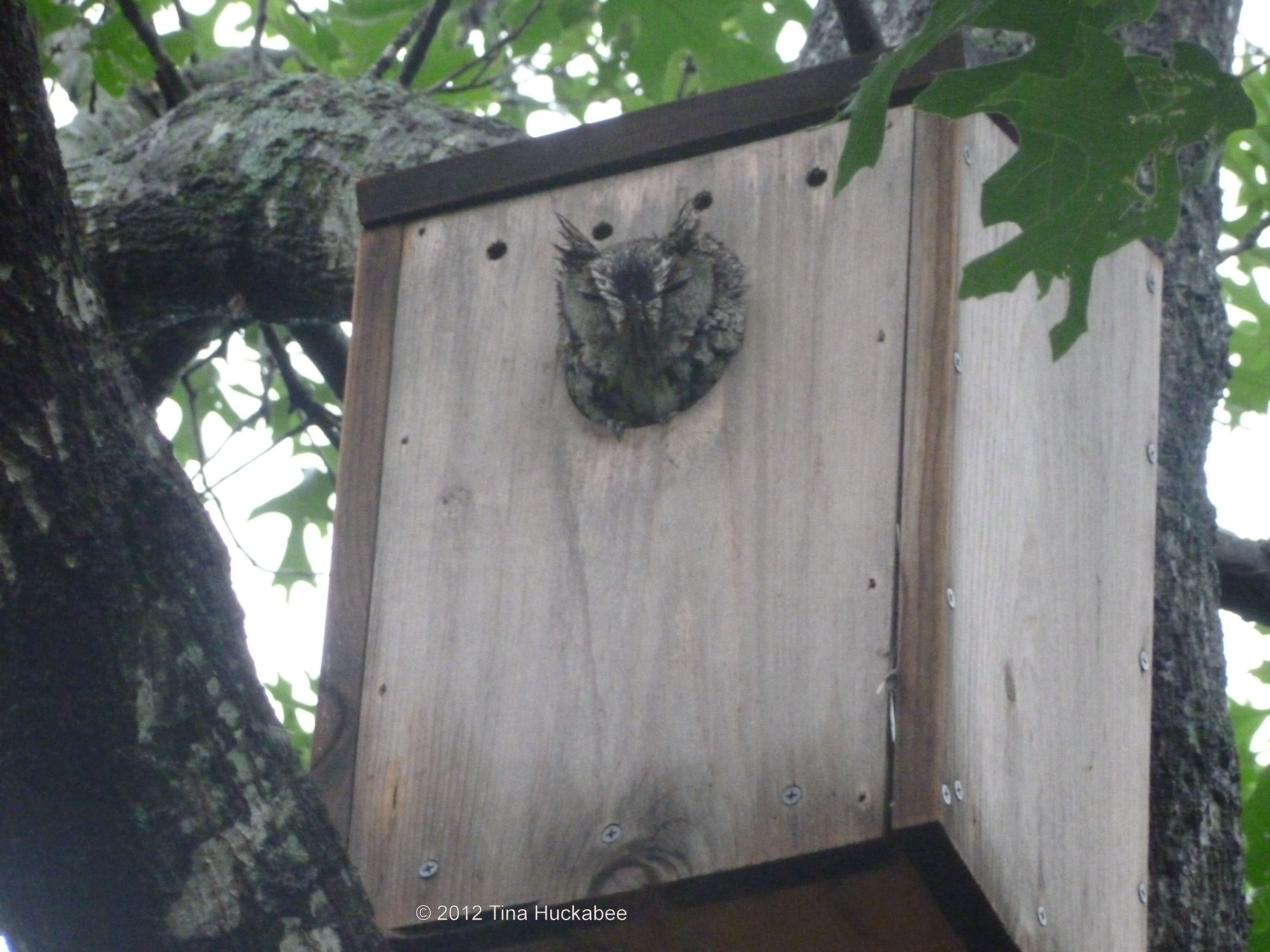 Four years ago on Mother’s Day, my sweet husband and sweet son gave to me an Eastern Screech Owl-house that they jointly made. It’s probably the best gift I’ve ever received. Later that year we put the house about fifteen feet high in a Red Oak tree in our backyard. We’ve had a couple raise three broods in that house (and its replacement, after the house was damaged when we had honeybees removed last year). The first year, Mom and Dad raised four owlets and last year, two.