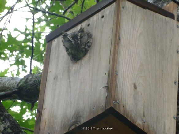 Roberta, it is exciting to have owls and the Screech Owl is not hard to attract to your yard if you have them in your area. Just buy or make an owl house (you can easily Google directions on how to make the house–it’s not hard), put it up and be patient. A sad addendum though to yesterday’s post: I was gone from home for a few hours last night and when I checked the owl house at about 8:30, I found the owlet dead on the ground. There were no obvious signs of trauma, so I assume with his unusual bravery of sticking his head out, that he
