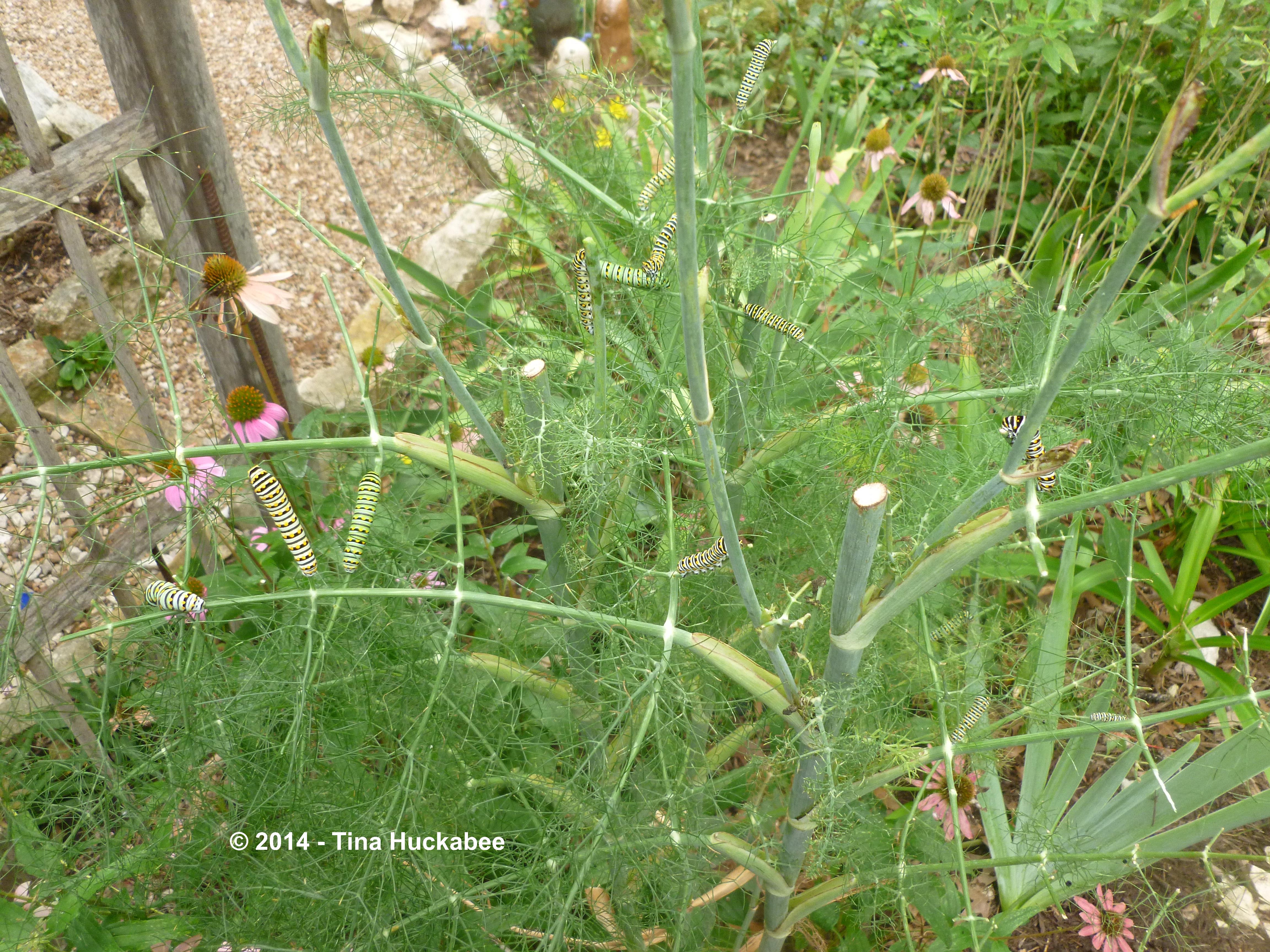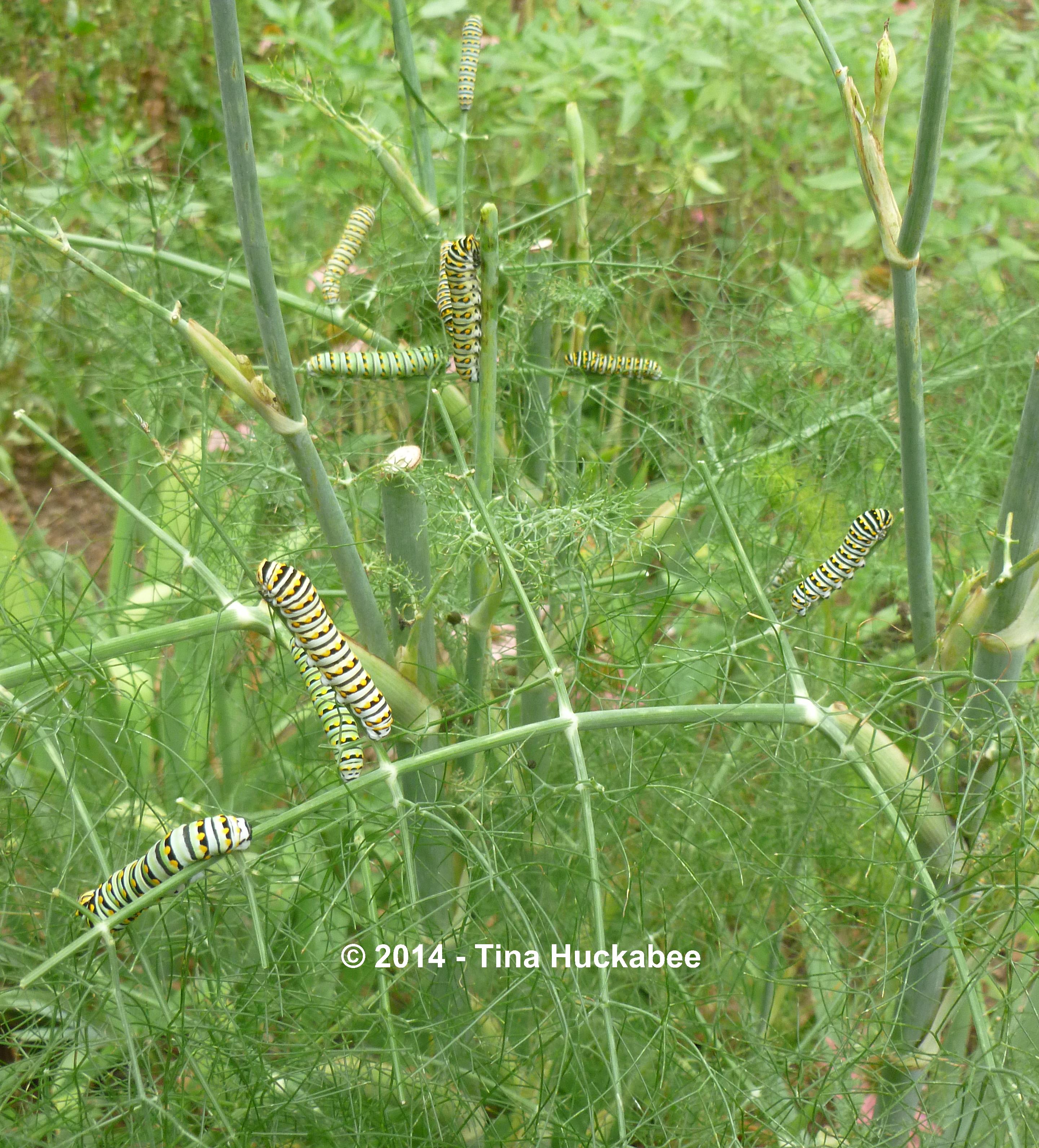 Ladies, I believe the collective noun for caterpillars is “army”. Tina, you reminded me to go out and look again for ladybugs in various stages hunting those aphids. At least something is having fun on my fennel this year!