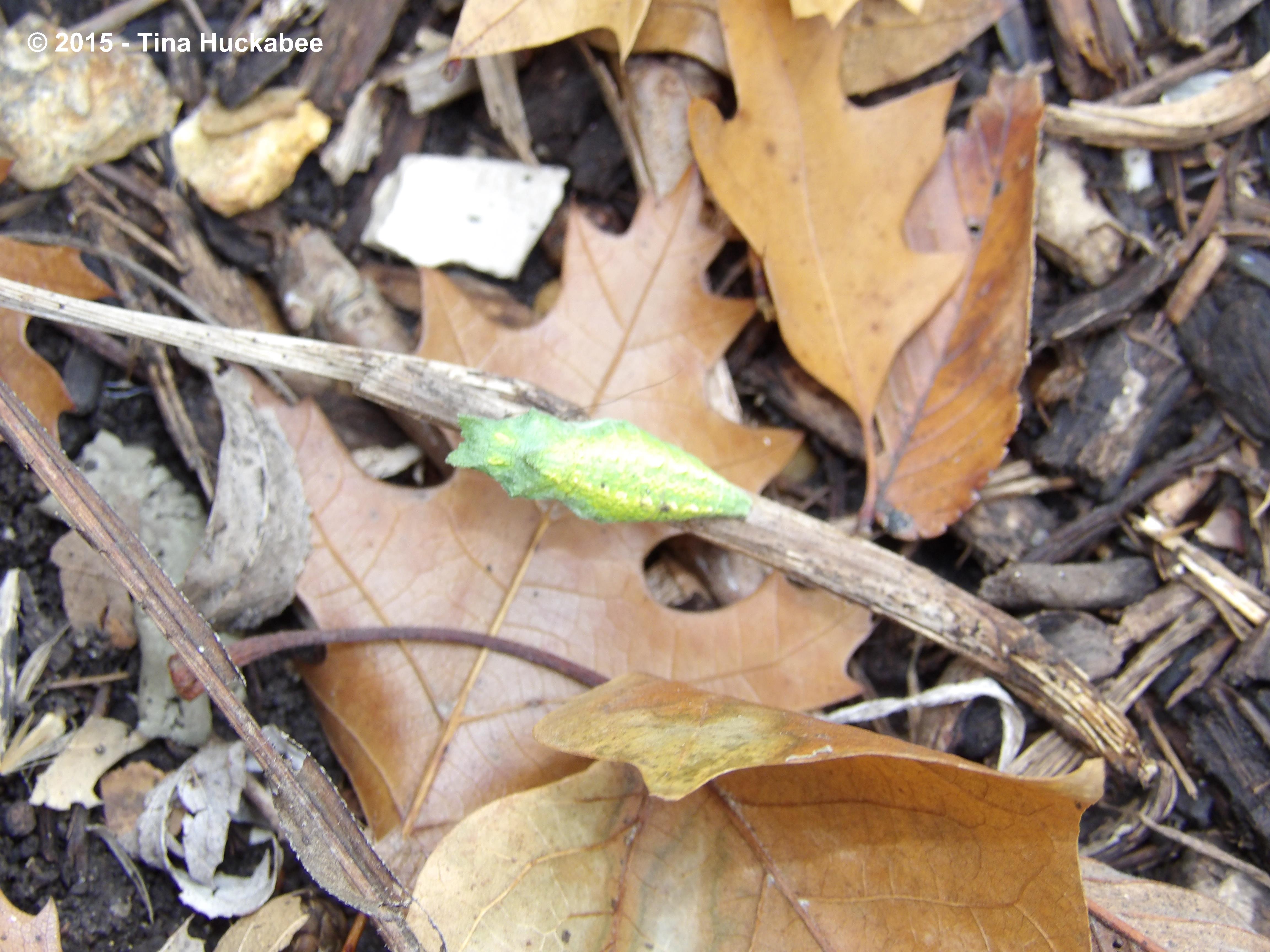 Happy 2015 to gardeners, garden bloggers, and especially to the residing and visiting wildlife who augment the beauty and meaning of our natural spaces. This little cloaked Black Swallowtail, Papilio polyxenes, butterfly chrysalis,