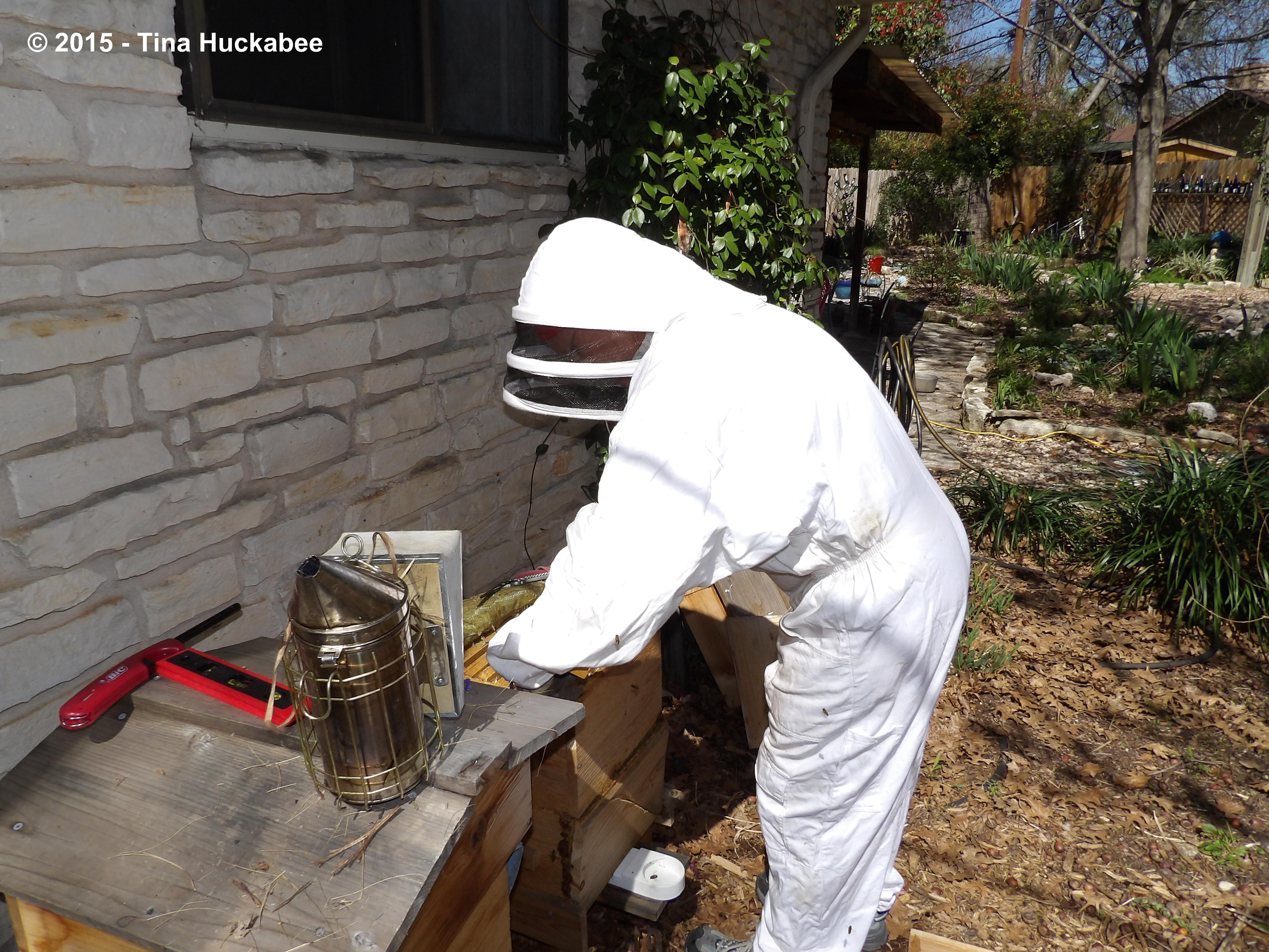 Suited up, smoker fired, bee surgical equipment at hand, we’re ready to go!