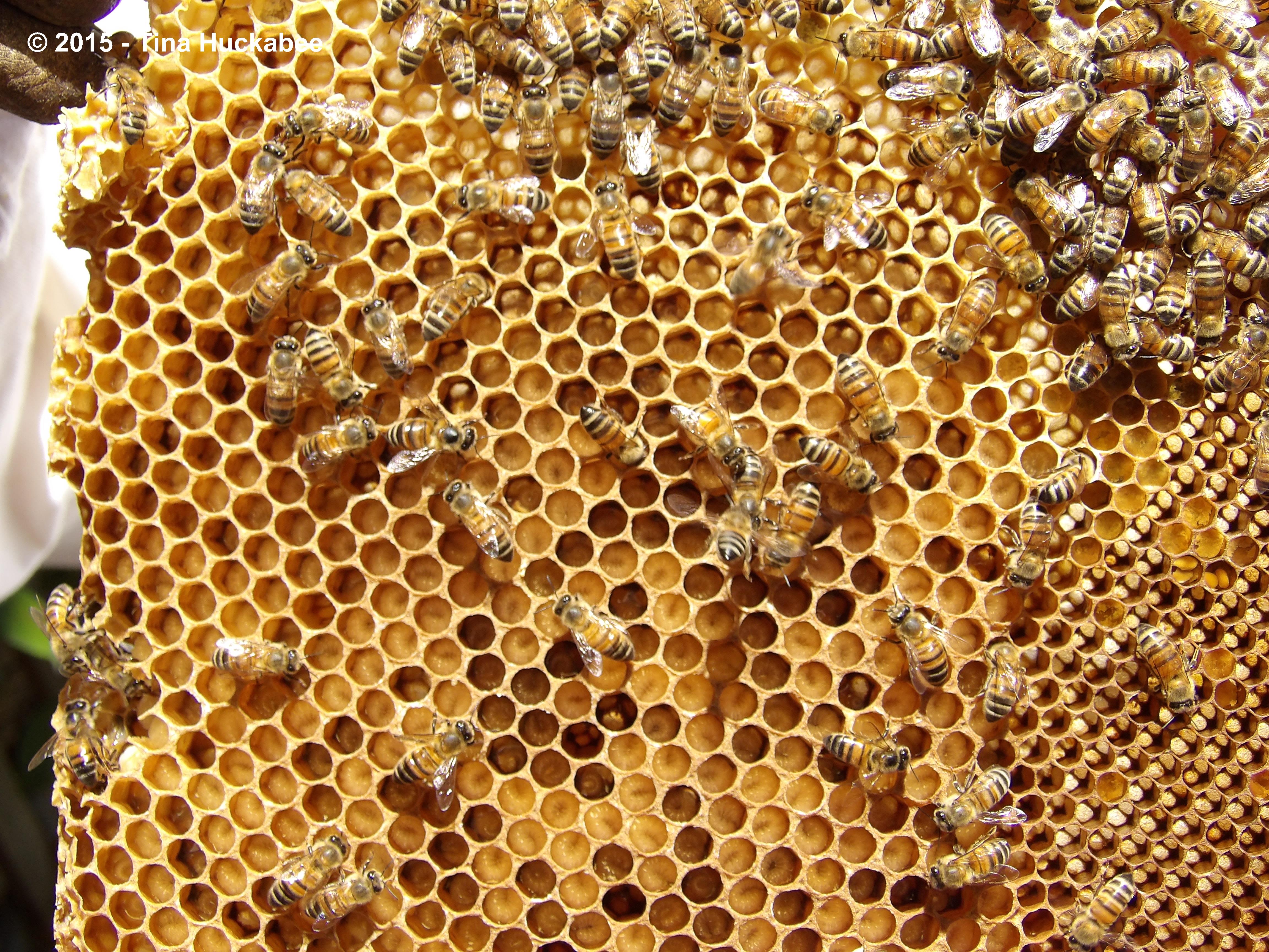 Pollen stores, capped honey,