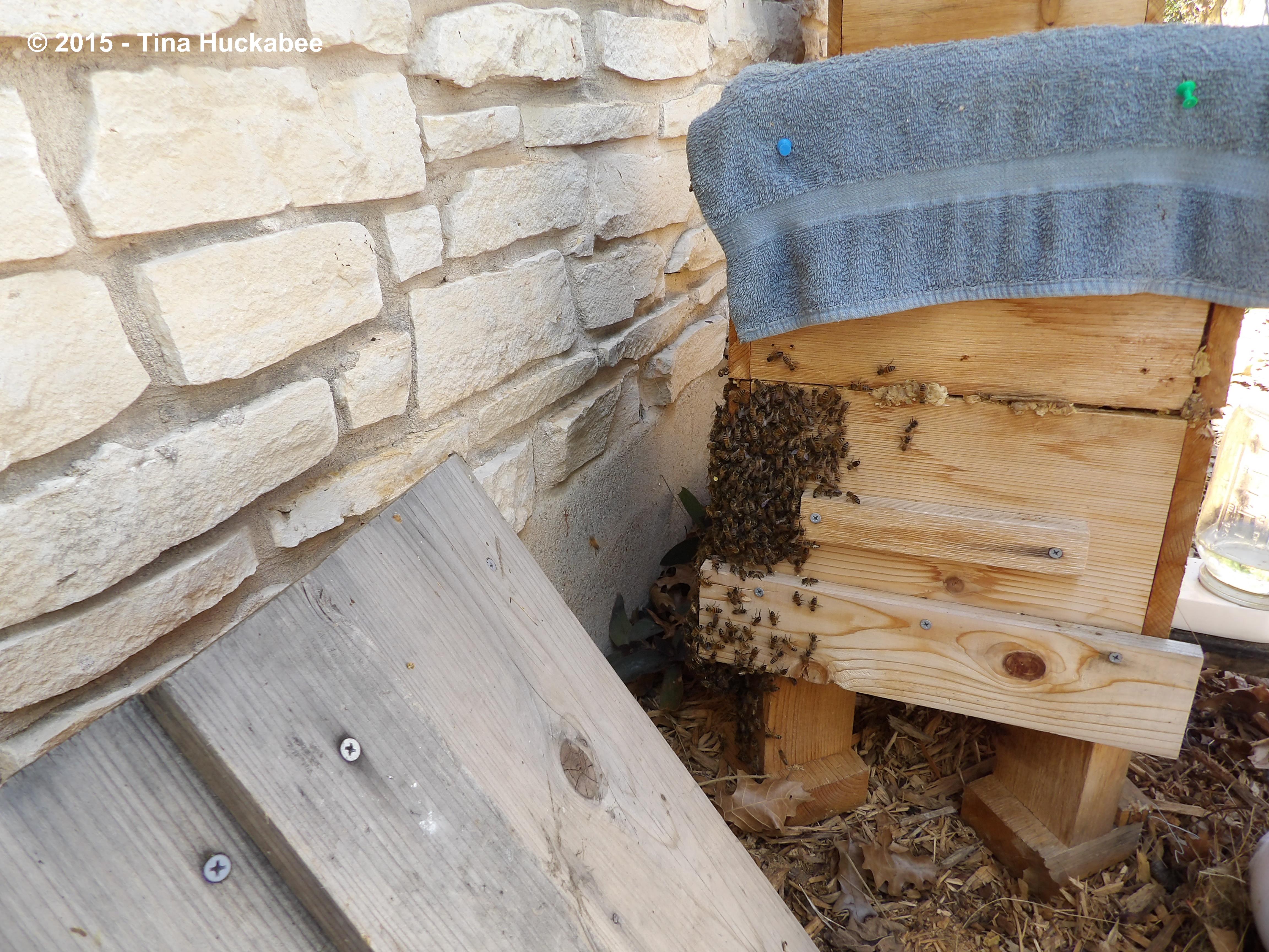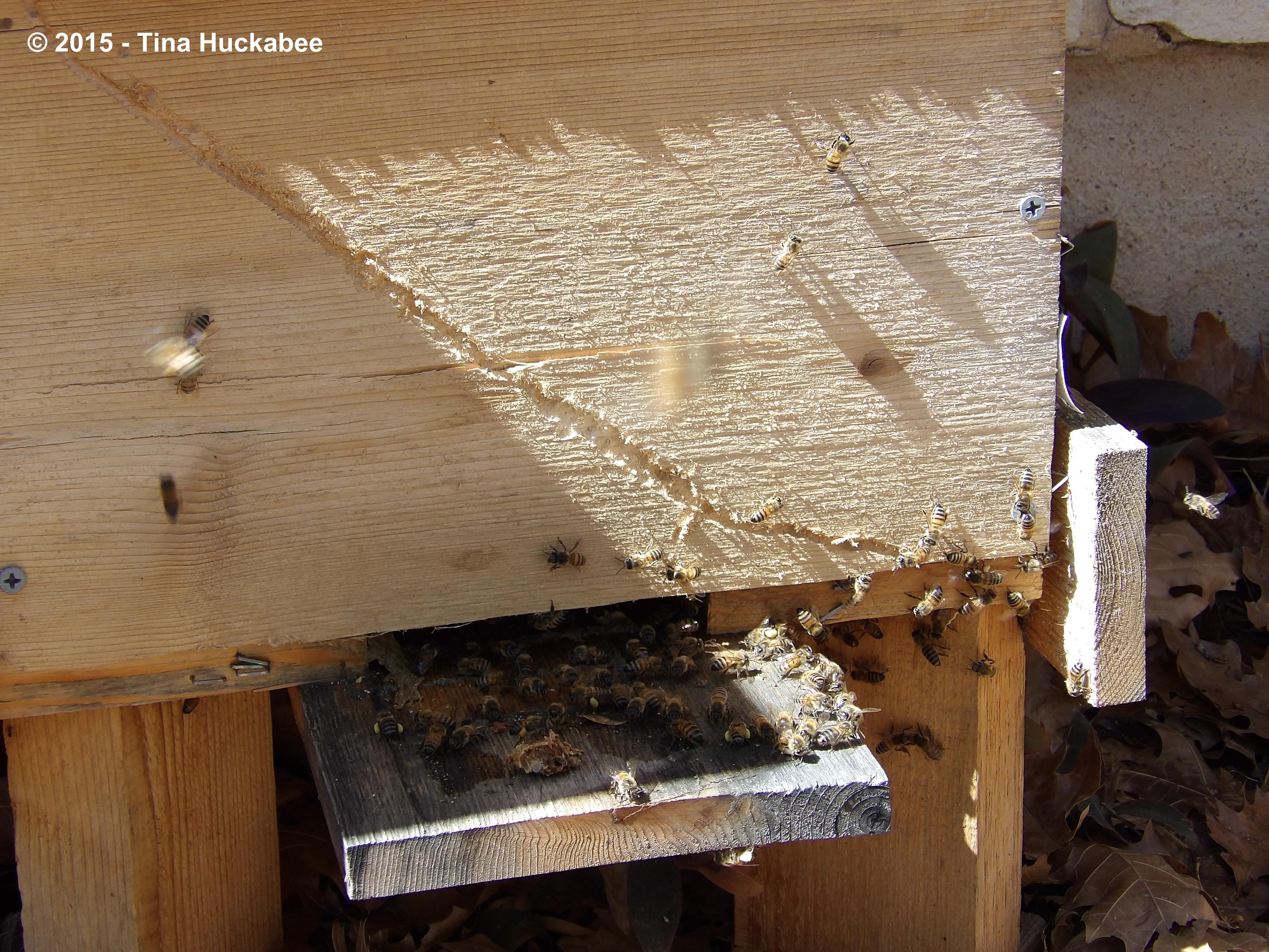 I think they are happy…if bees are happy. They’re certainly focused, ambitious and hardworking. I guess I might have missed a scar on the wood, I’m so used to it. 🙂