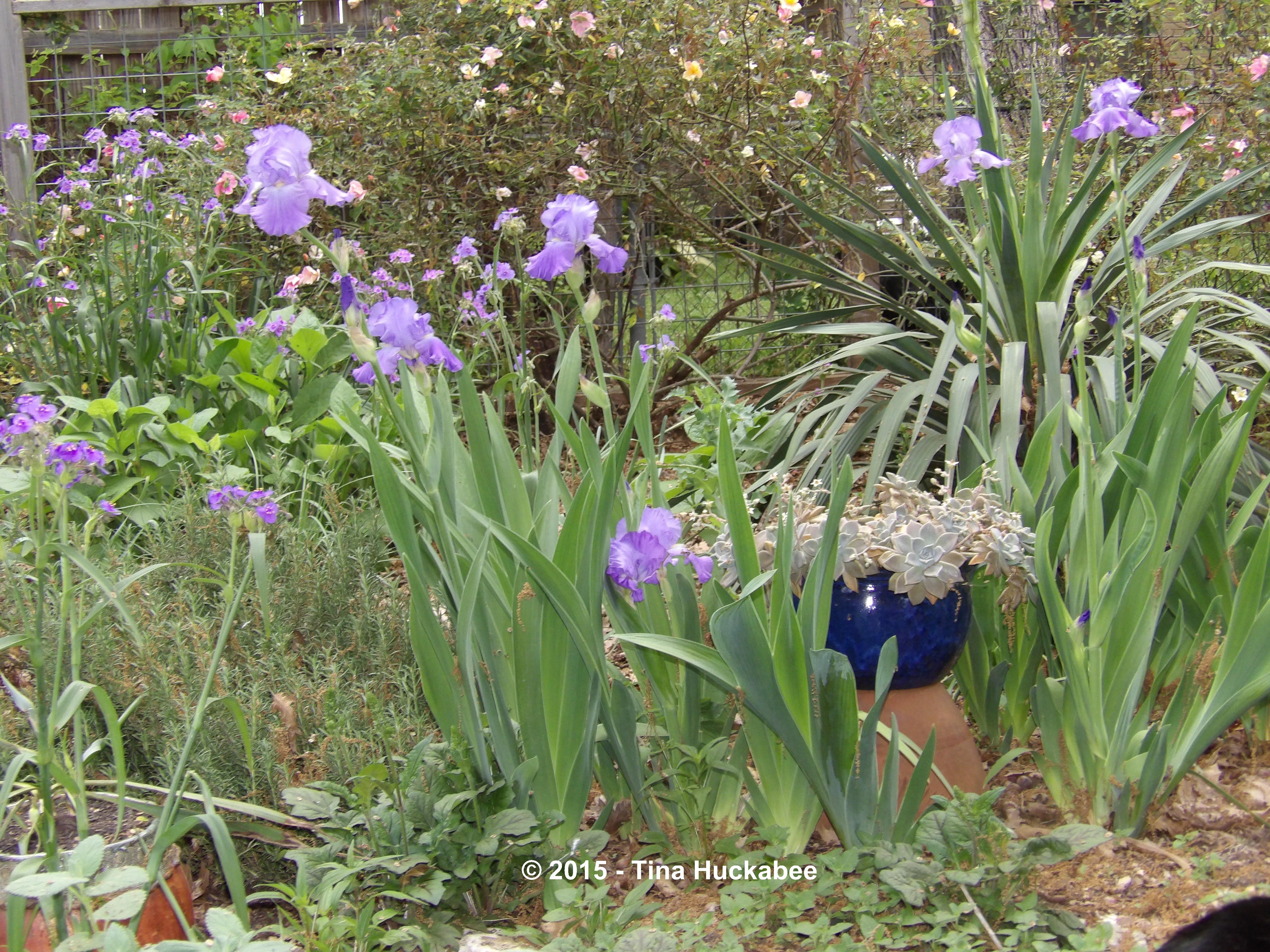 It’s spring and a luscious one at that.  My garden is benefitting  from just the right amount of rainfall and at the right times–the rain is lending its bounty to a glorious spring show for urban gardens in Austin and I’m enjoying the results of that rainfall. Most spring-flowering perennials and bulbs are at their peak of beauty, including the many iris varieties growing in Austin gardens.
