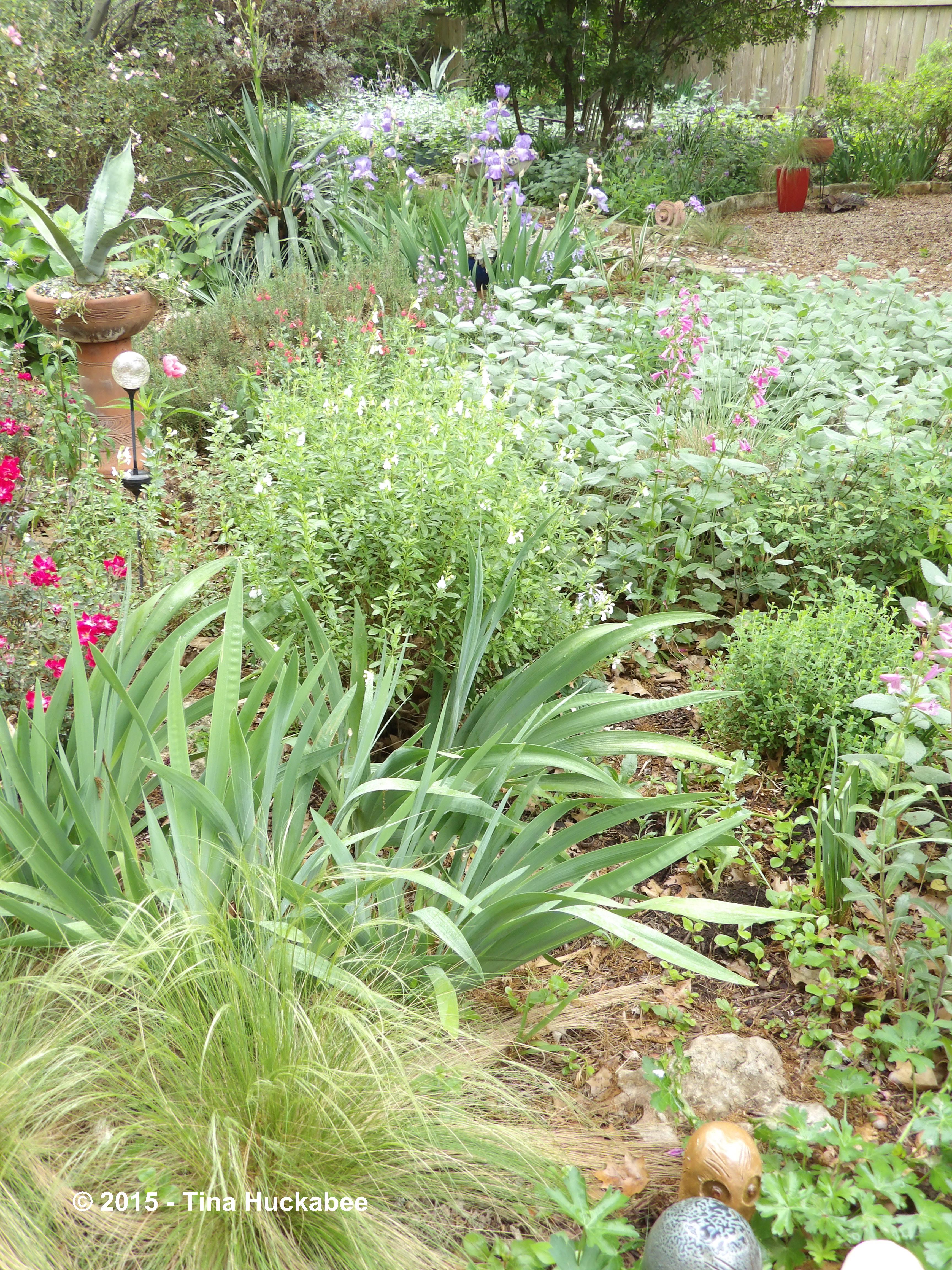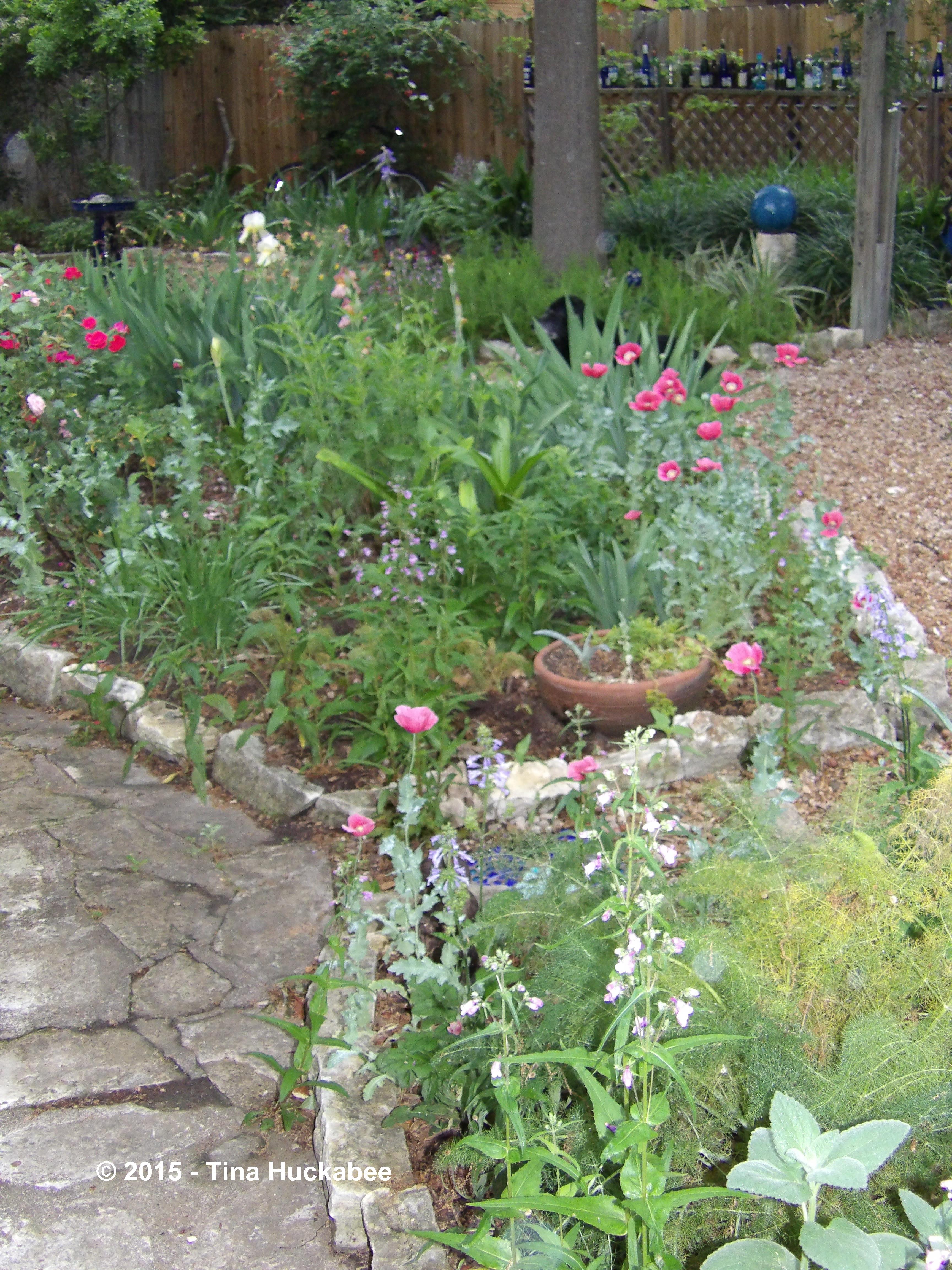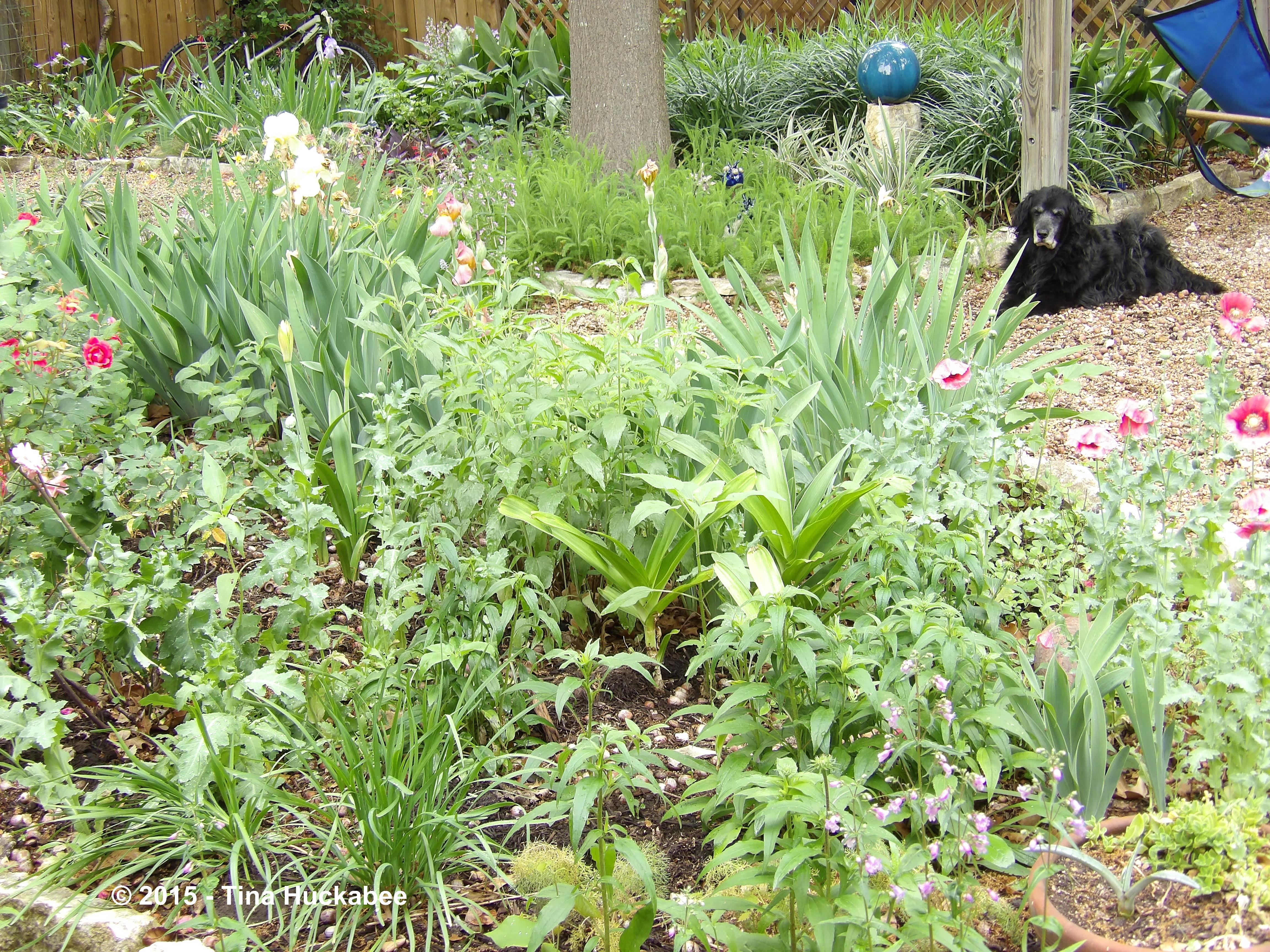 Because of my passion for plants and their workings, in short, a plant geekiness, I don’t often take photos of my gardens in full shots. I favor selection of subject, not always the full palette. But this bountiful spring, I see my garden with its perennials abloom and mementos in place, not differently, but in its entirety: lush, growing, and life-sustaining. Come and take a virtual walk with me this lovely spring day to see a garden created by someone who loves her plants-n-critters. Mine is an attempt to heal a small part of the world by primarily working with what belongs here: a collaborative-effort garden between the gardener and her surroundings.