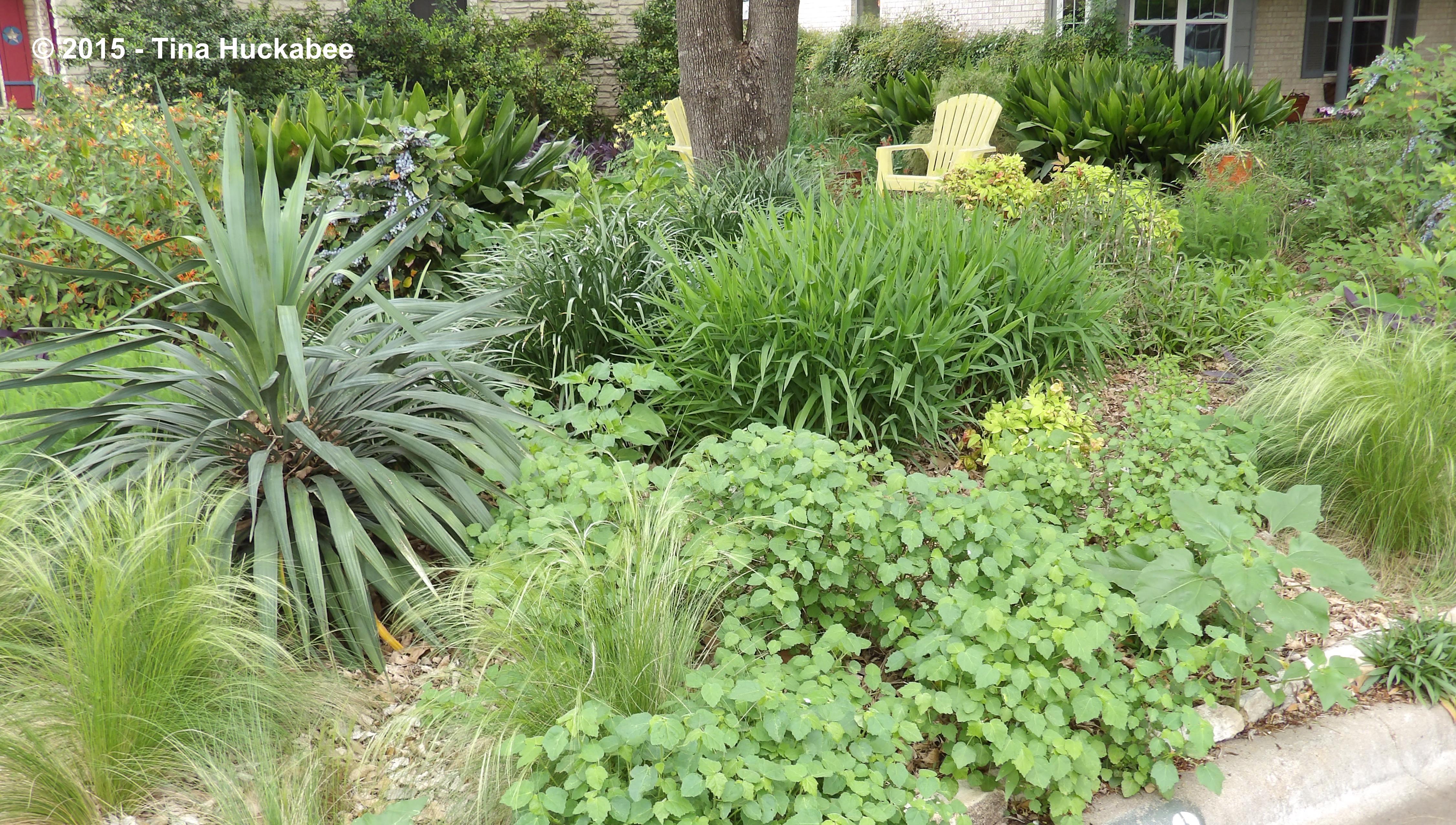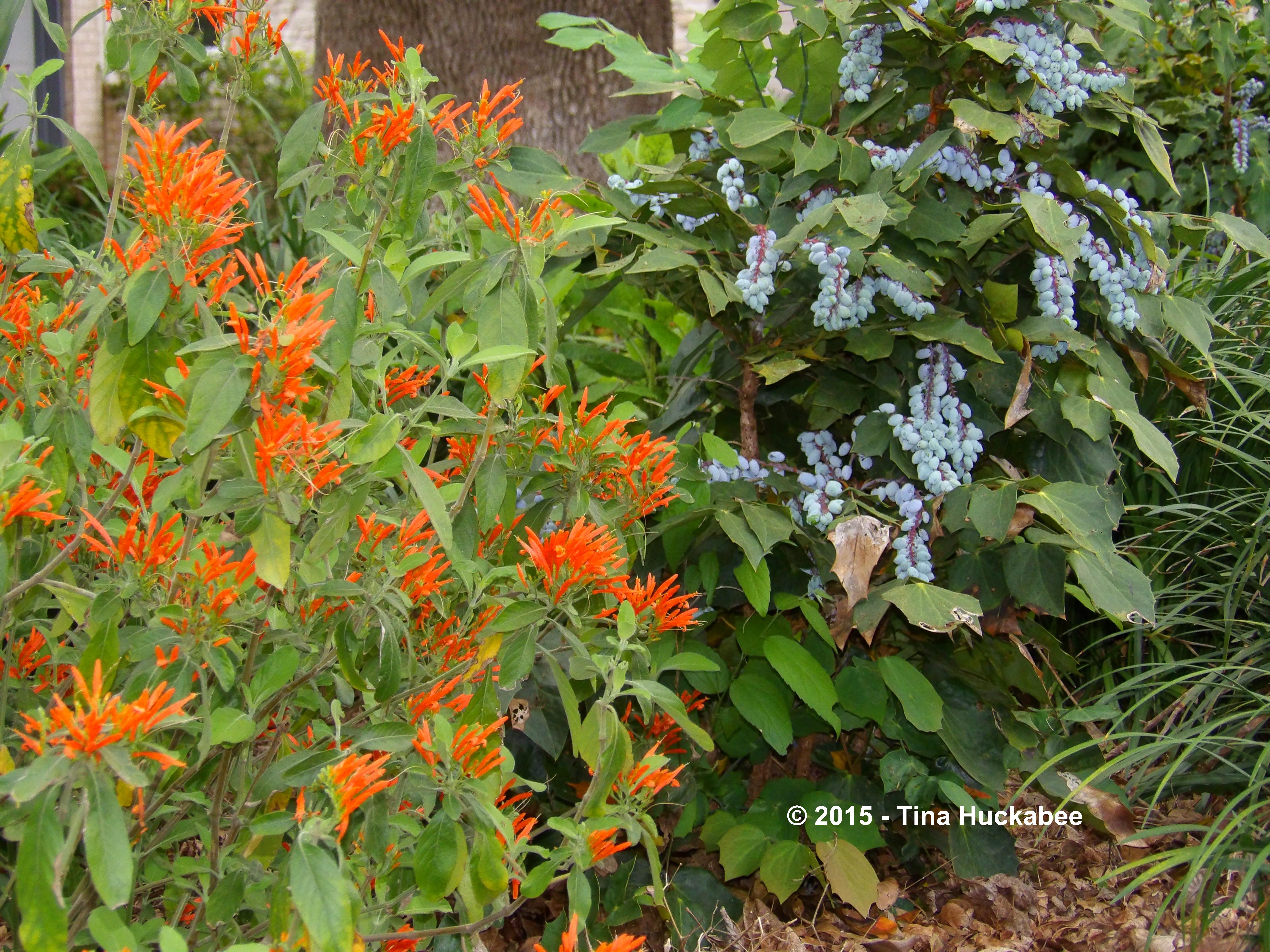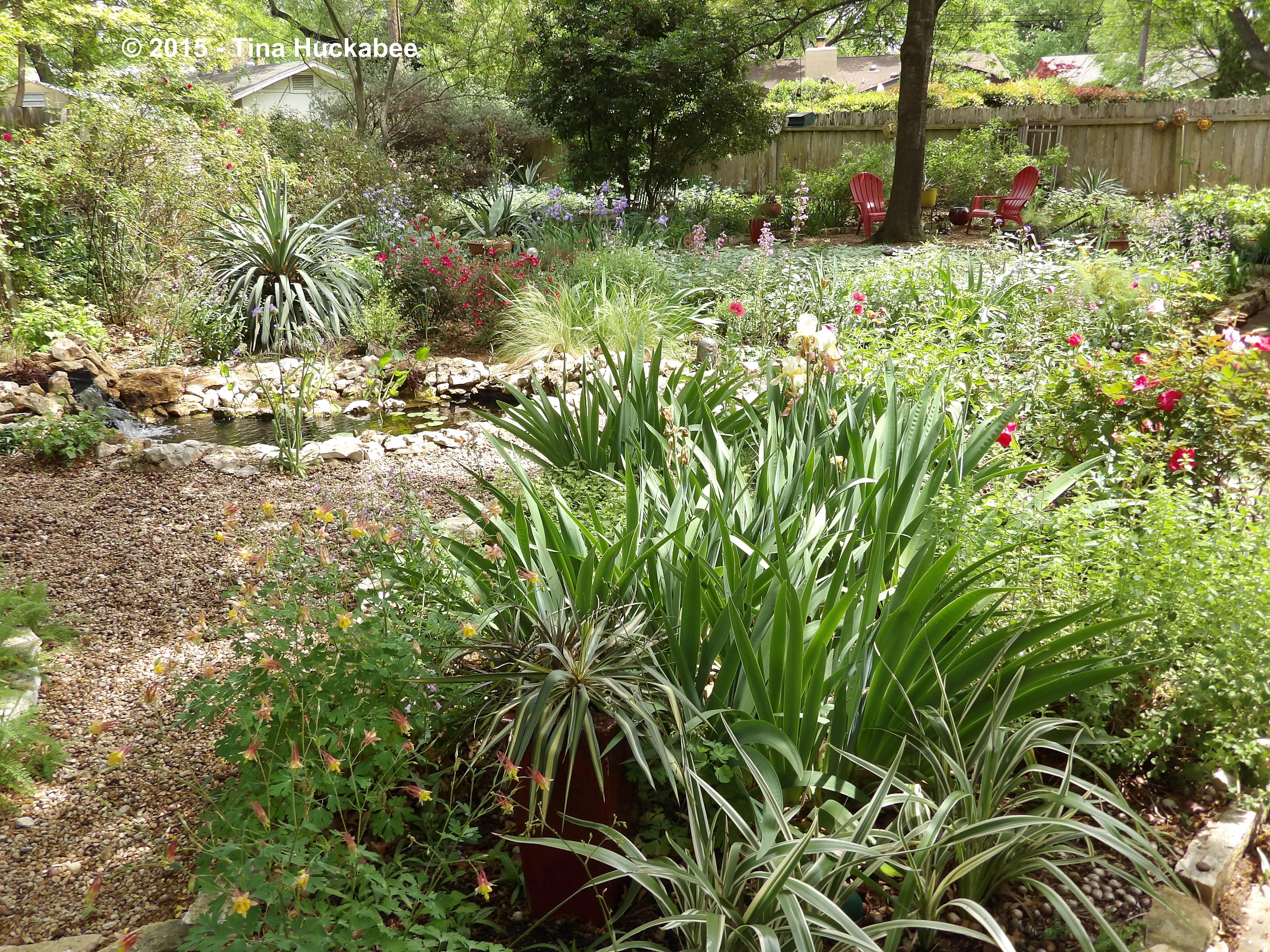 Seeing your spaces more in toto is inspiring. Your gardens are beguiling and your color choices, especially when taken in combinations, reveal your artist’s eye. The blue of those mahonia berries against the orange of the Mexican honeysuckle…the yellow of the columbine echoed in the chairs and against the purple iris. Places to sit and ponder, paths leading you in and on – all wonderful reminders that going native isn’t limiting so much as it is liberating.
