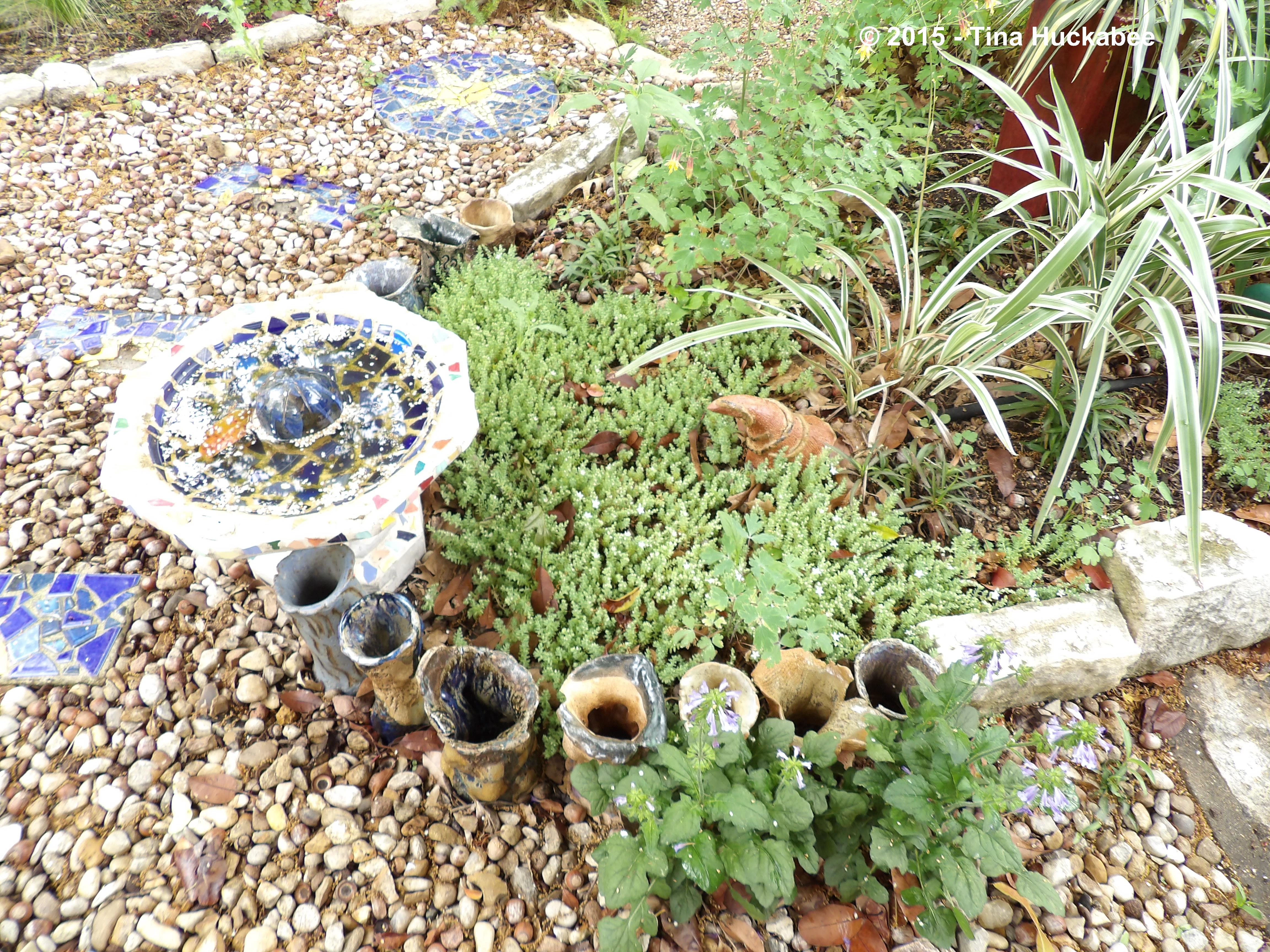 Do I have color choices? I just let’m rip–I like color! All color. I have a number of spaces in which to “sit and ponder” and swat mosquitoes. Grrrrr.