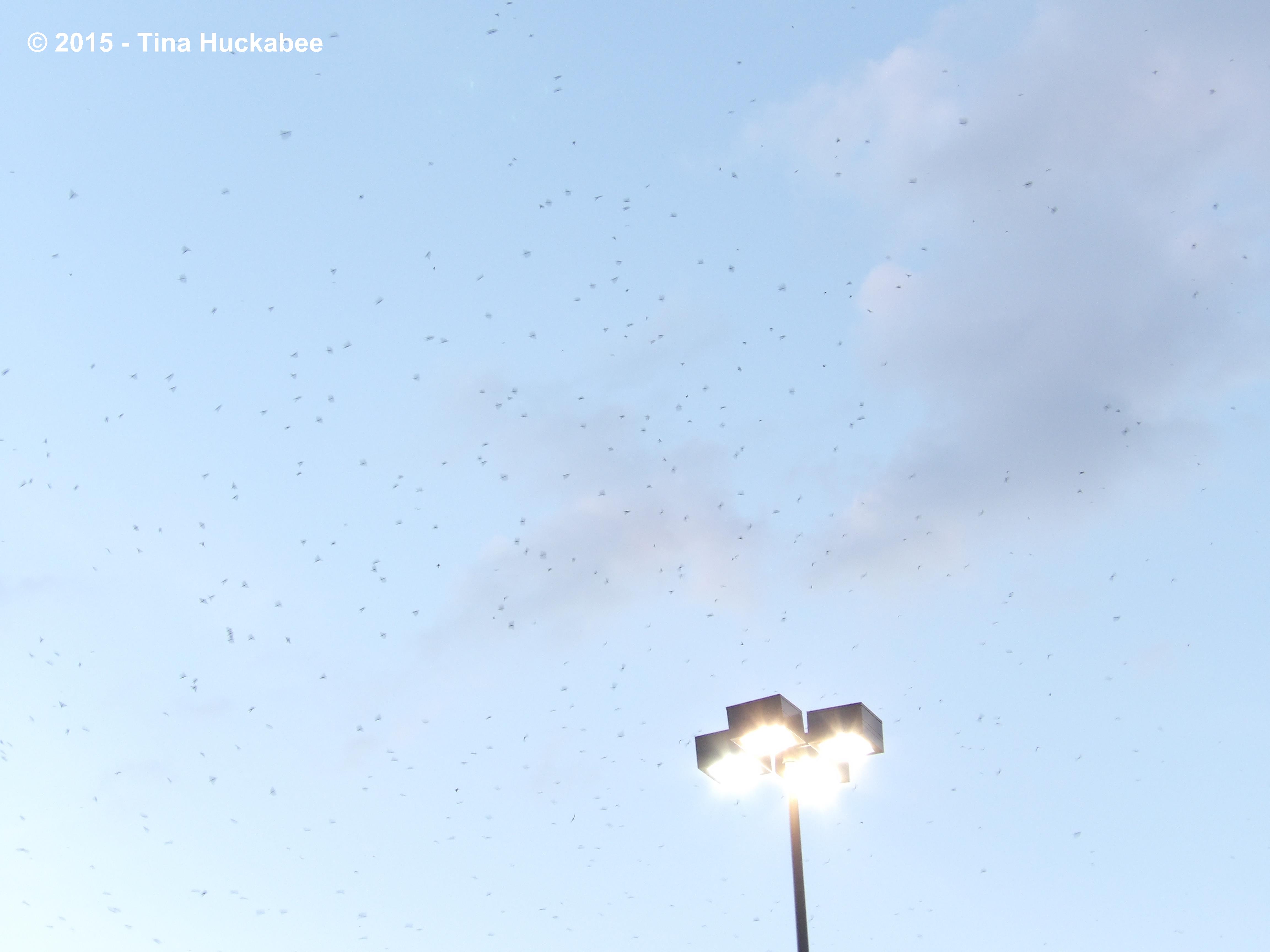 Here in Austin, Purple Martins gather by the hundreds of thousands, roosting in trees along I-35. Austin is located along one of three major flyways for this Neotropical bird. This year, the birds decided to change things up a bit and instead of roosting in oak trees at Highland Mall, as they have for a couple of years, they’re roosting in trees at the nearby Capital Plaza Shopping Center.