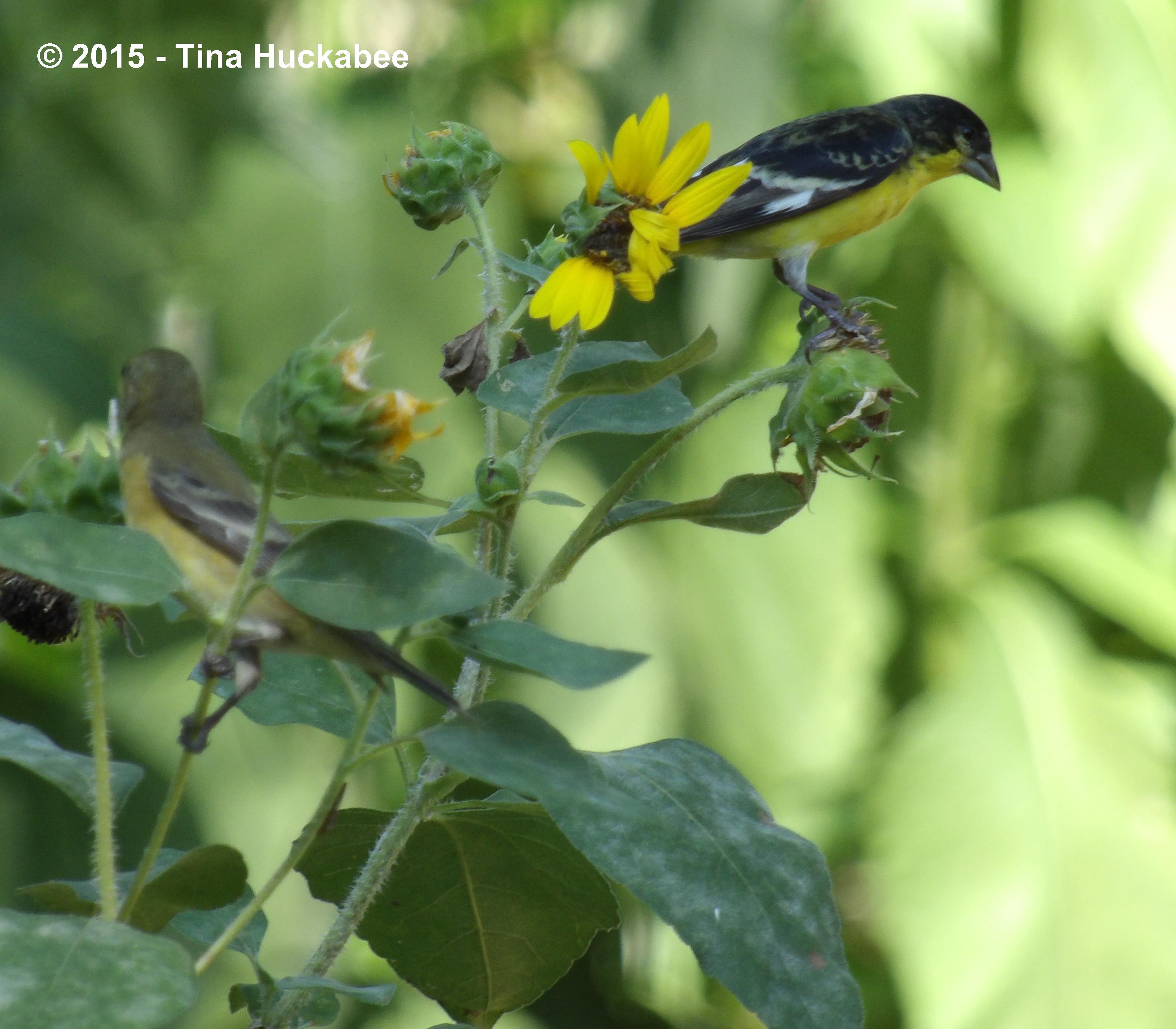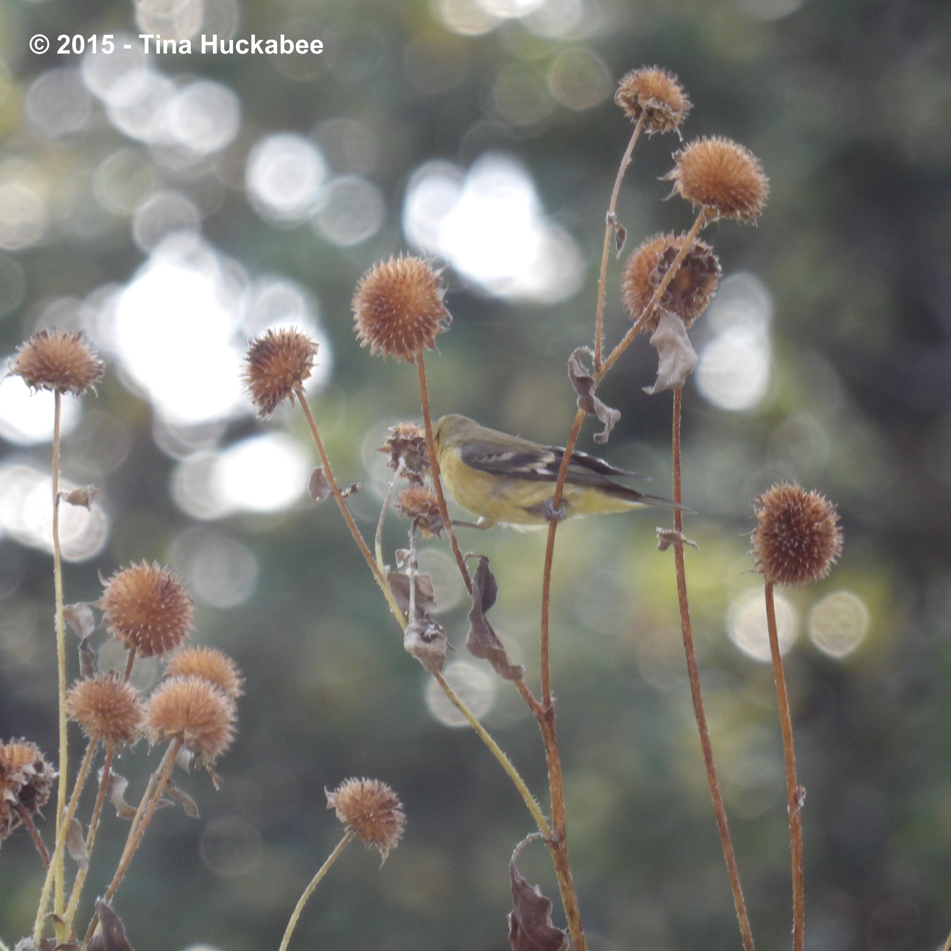 Lessers love the seeds of Asteraceae plants, like sunflowers.  I chuckle as they hang upside-down for their food; it’s a neat trick, though I’ll take my meals at the table, thank you very much.