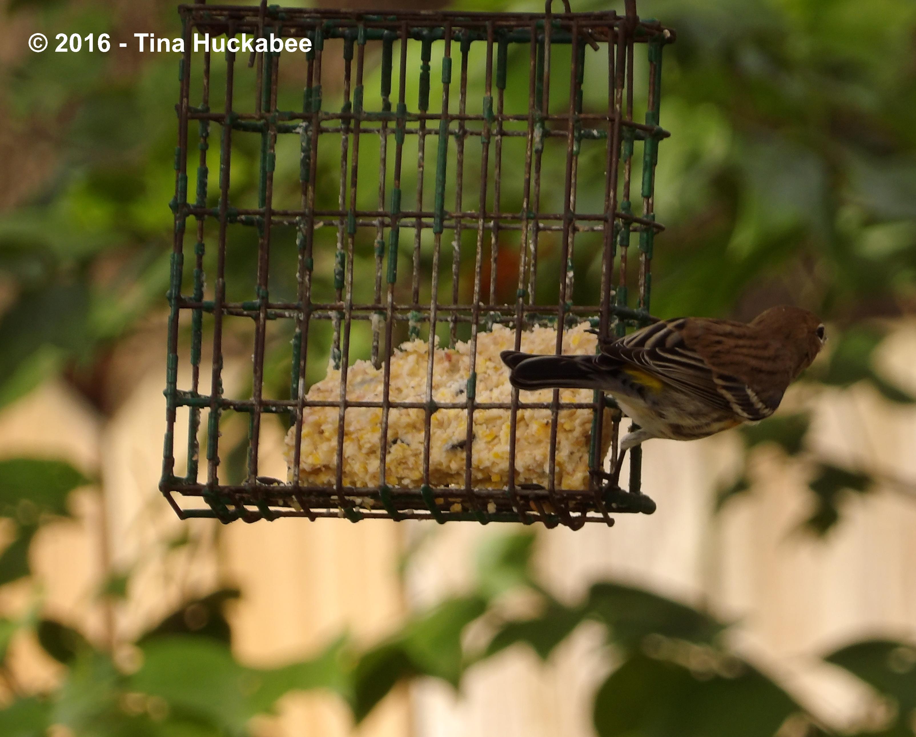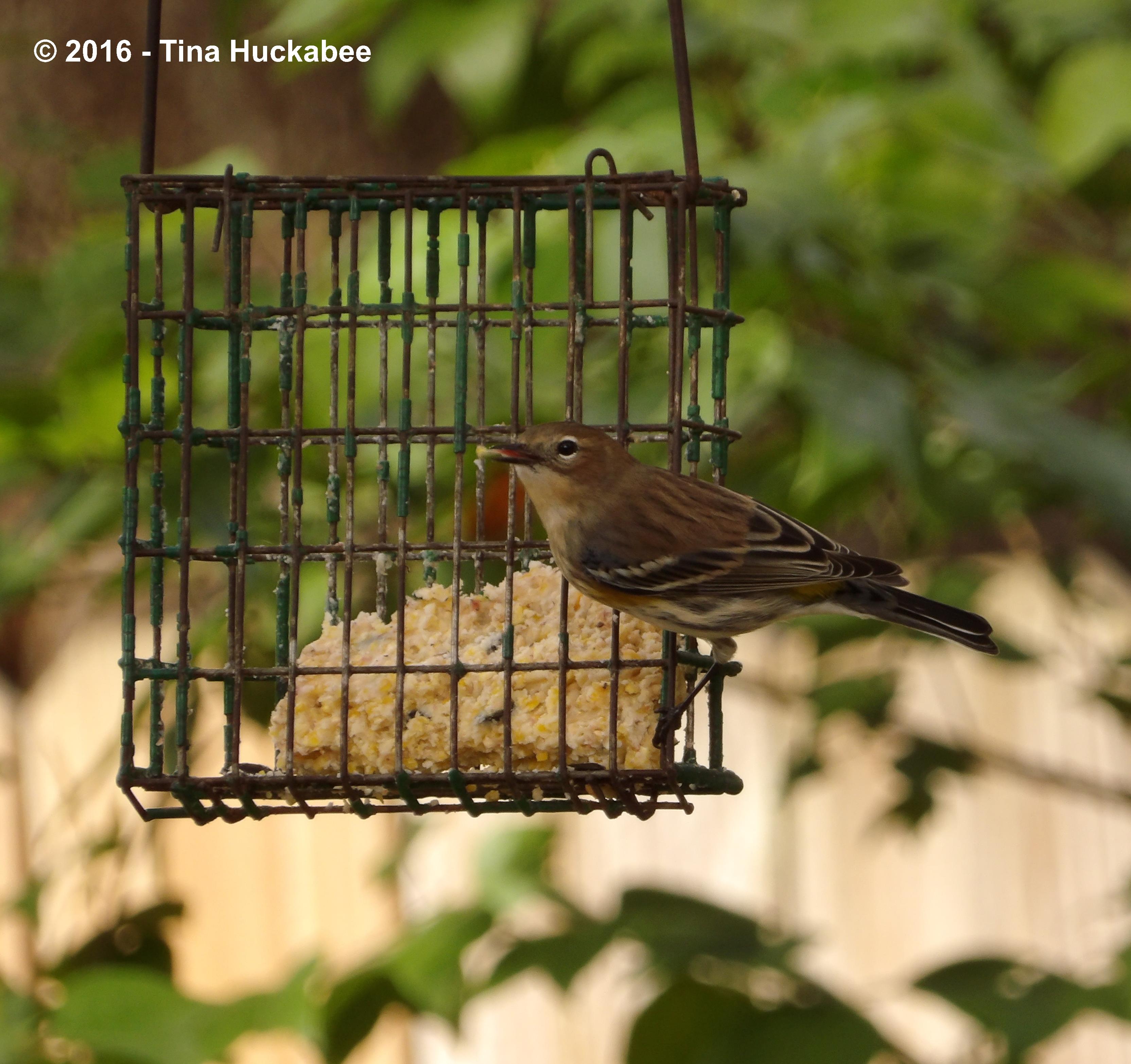 I took a lots of photos before I finally got that yellow in action. There are at least two Yellow-rumps visiting my gardens regularly. This male I see most often,