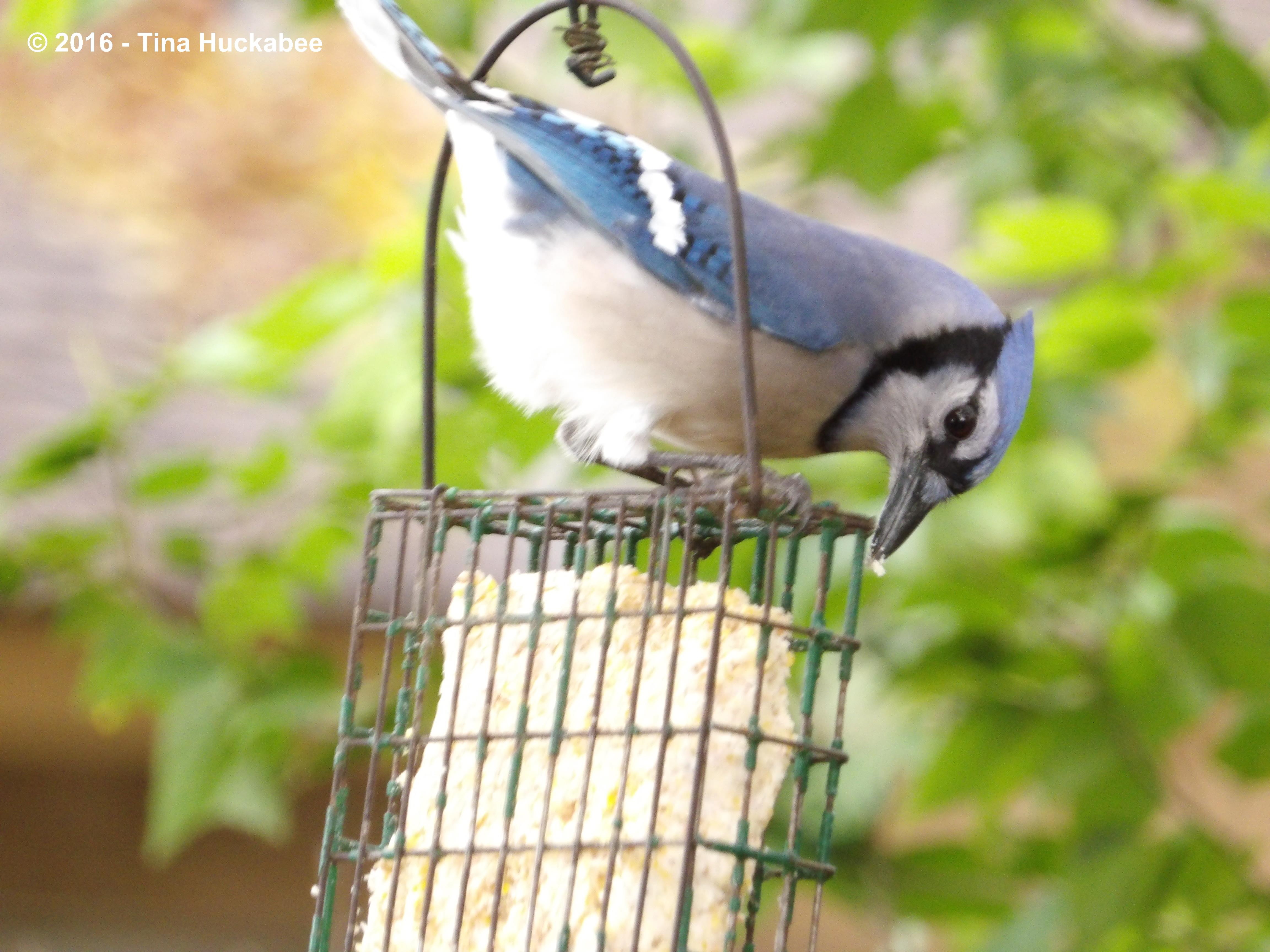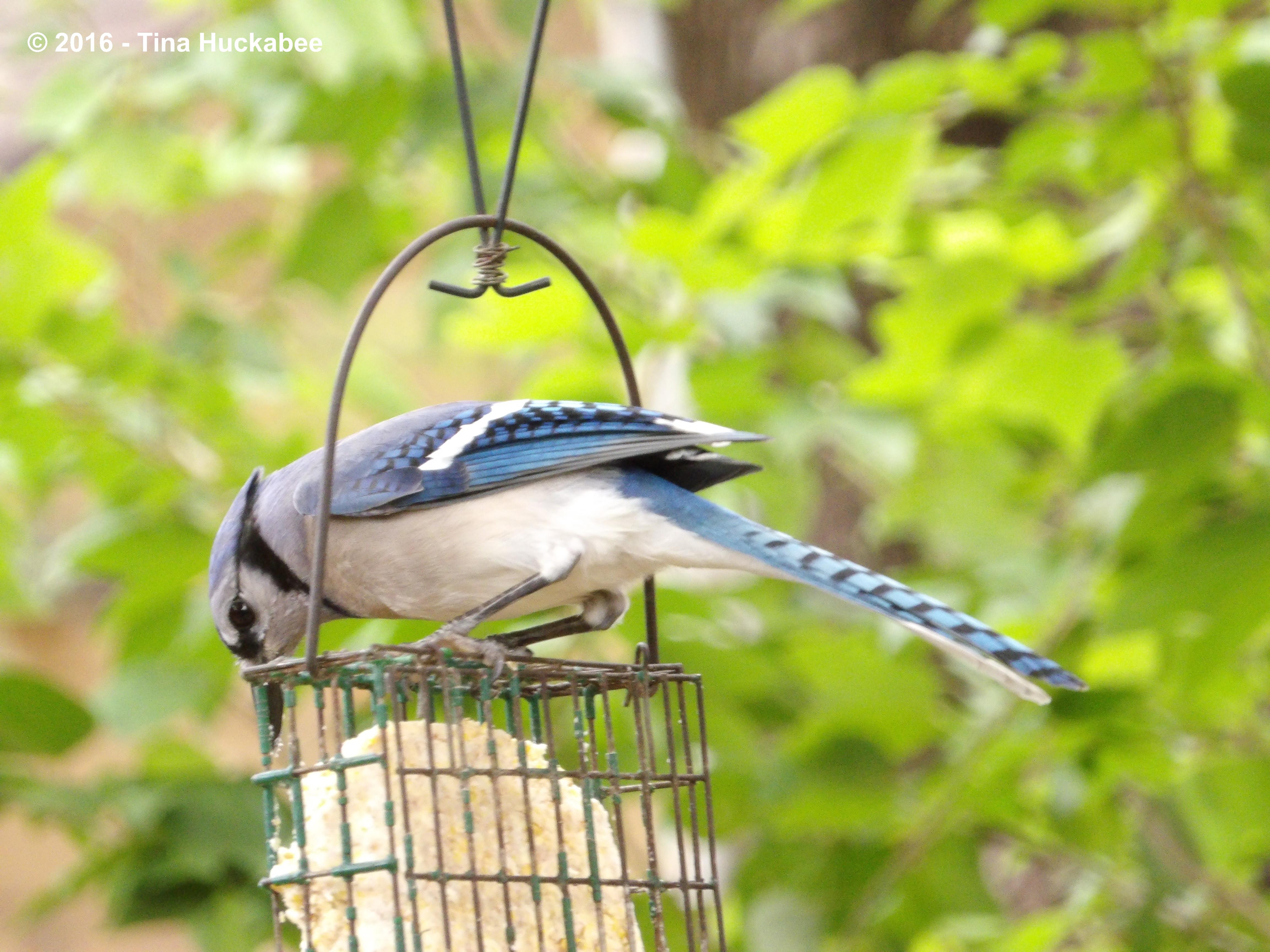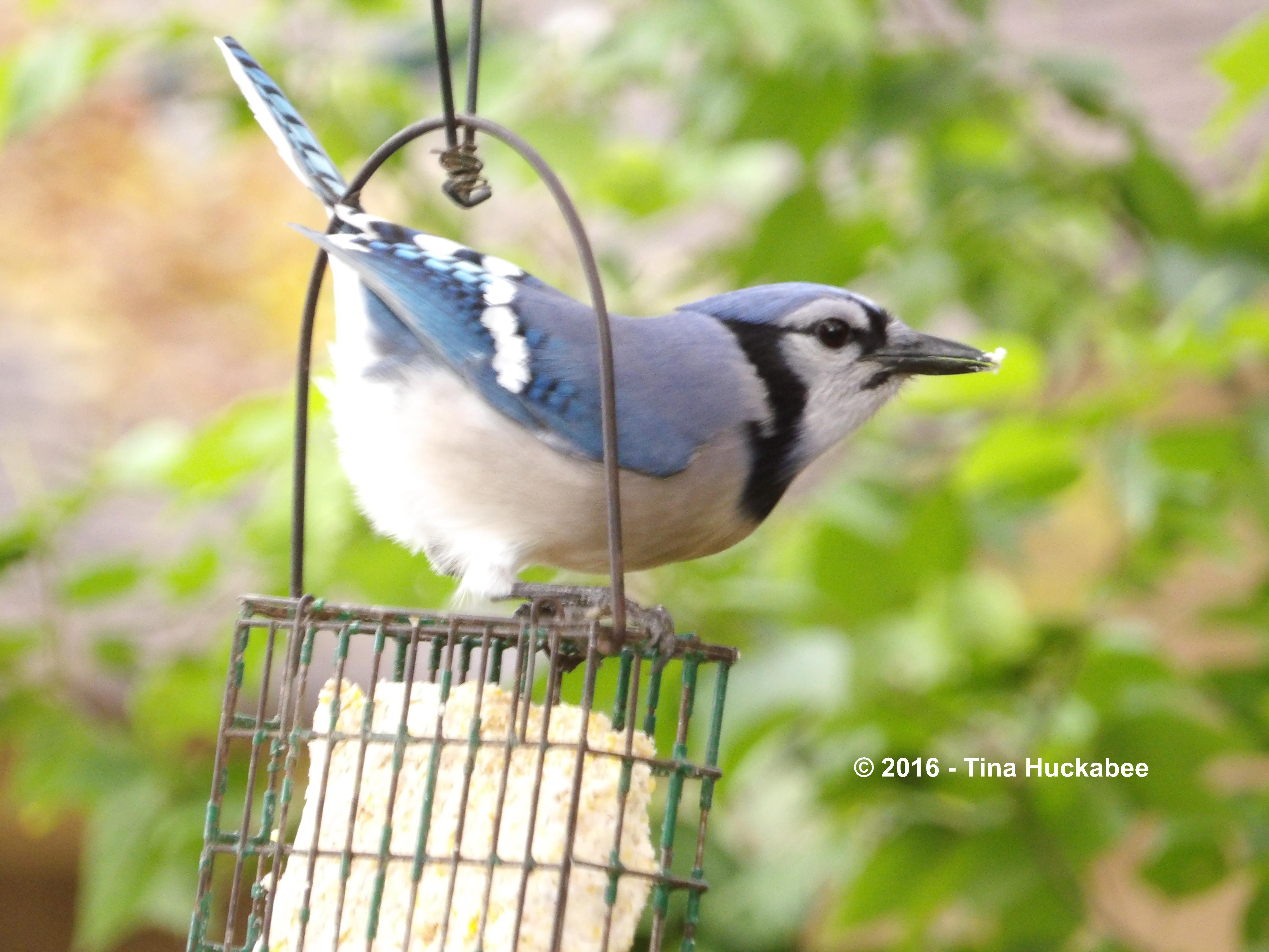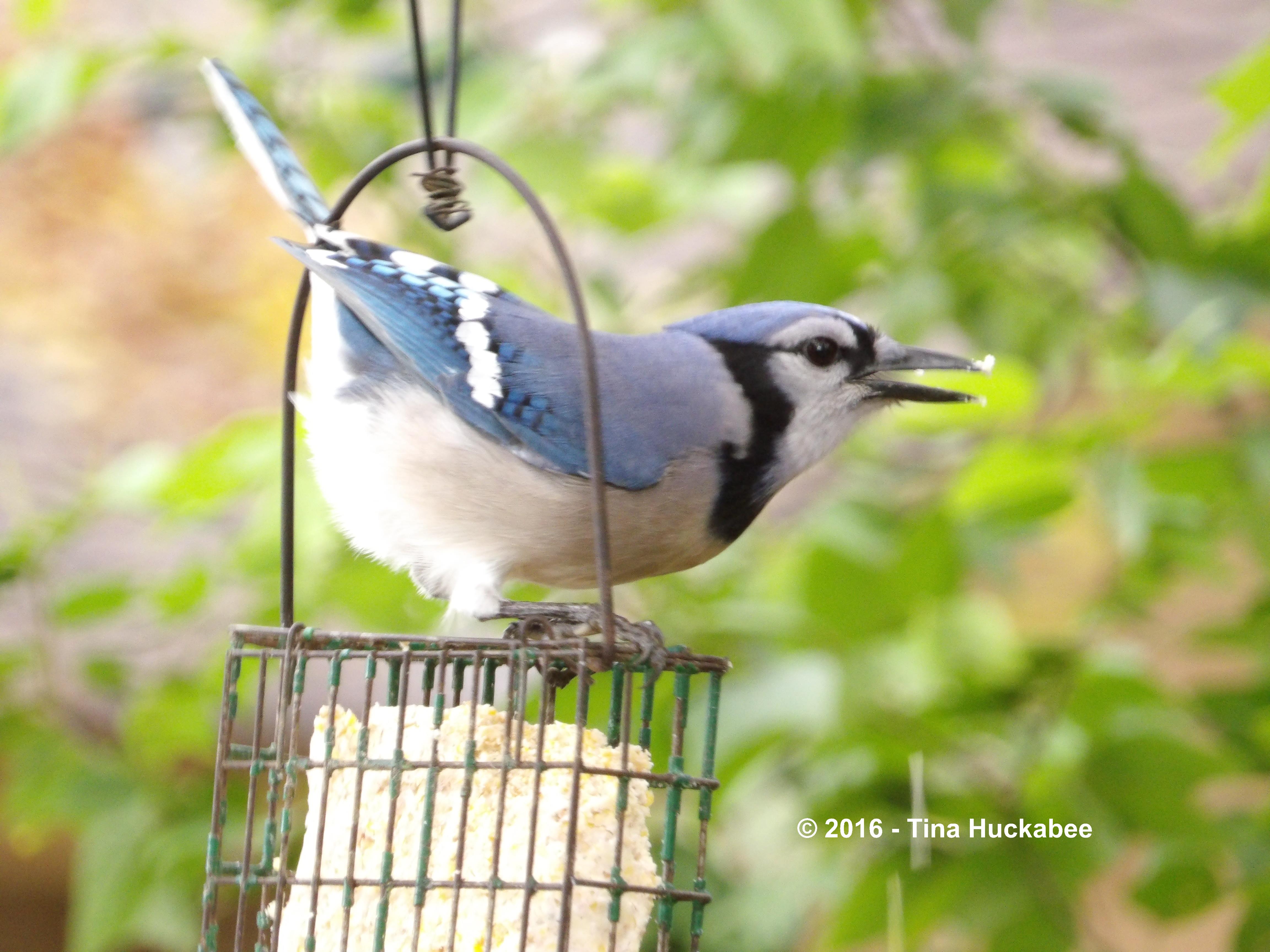 There are a number of native Blue Jay birds, Cyanocitta cristata, who fly through my gardens, stopping on a regular basis to nosh,
