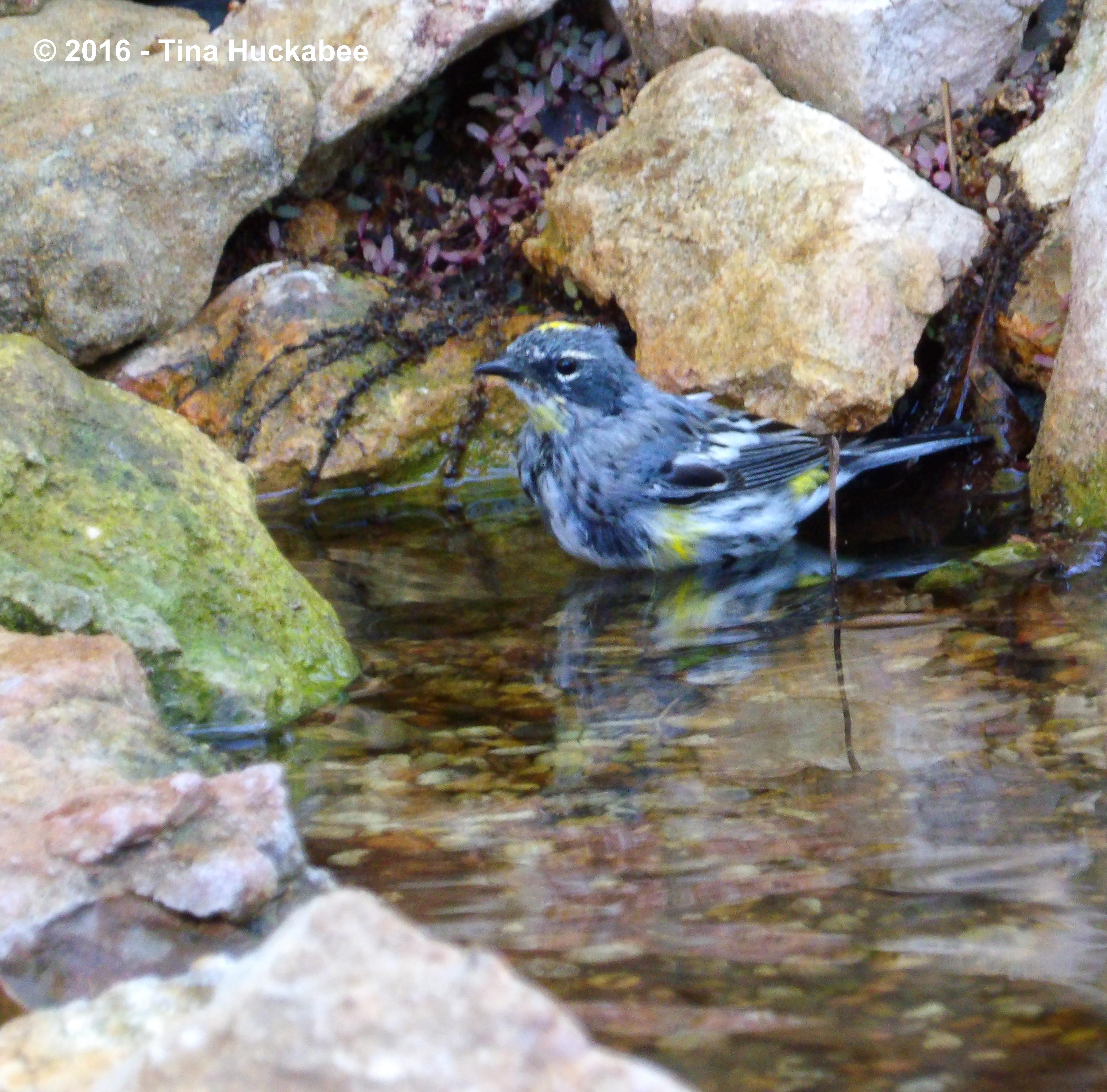 I hadn’t seen a Yellow-rumped Warbler, Setophaga coronata, in a week or so, when I spotted this one bathing in the bog of my pond.