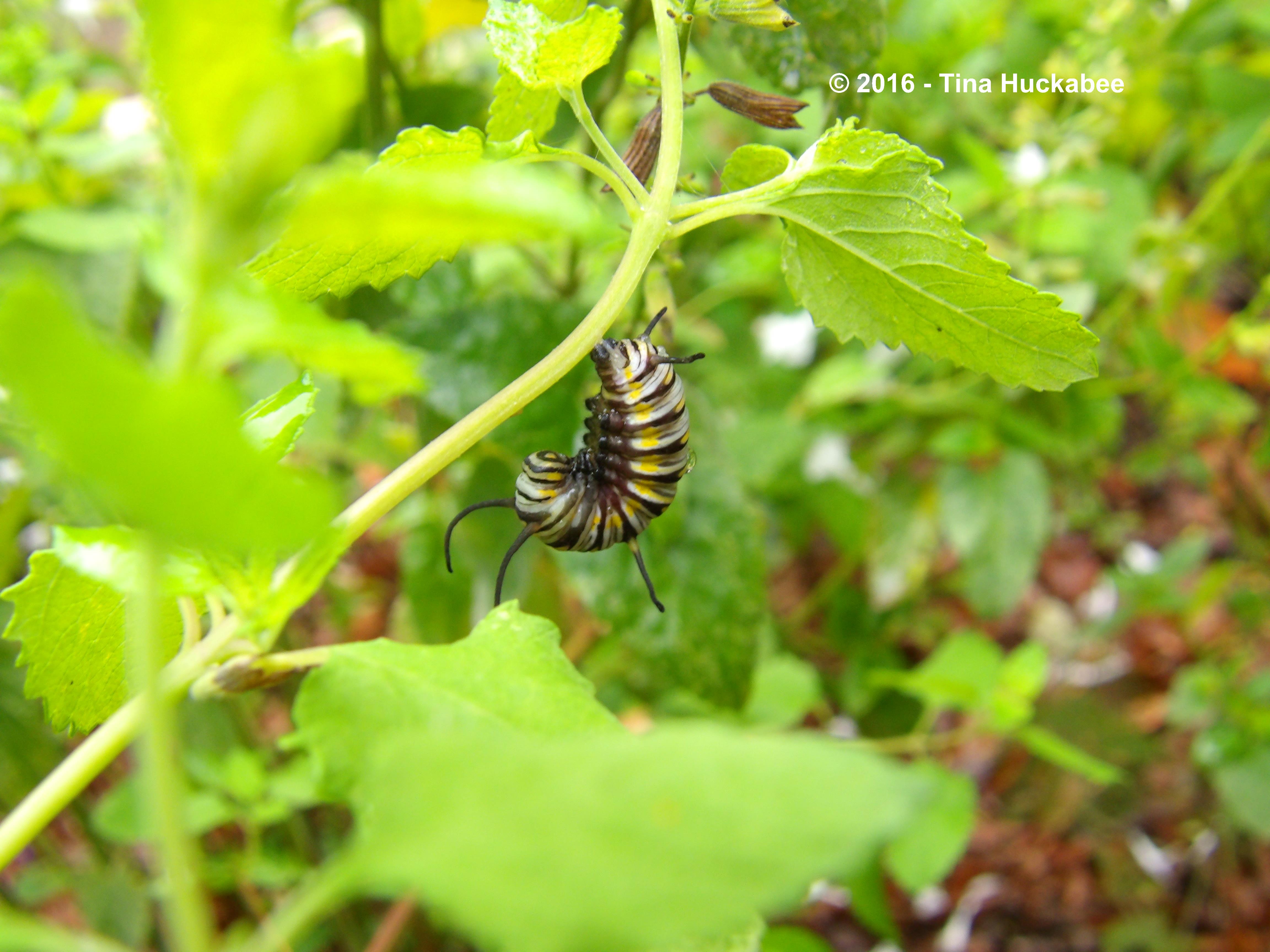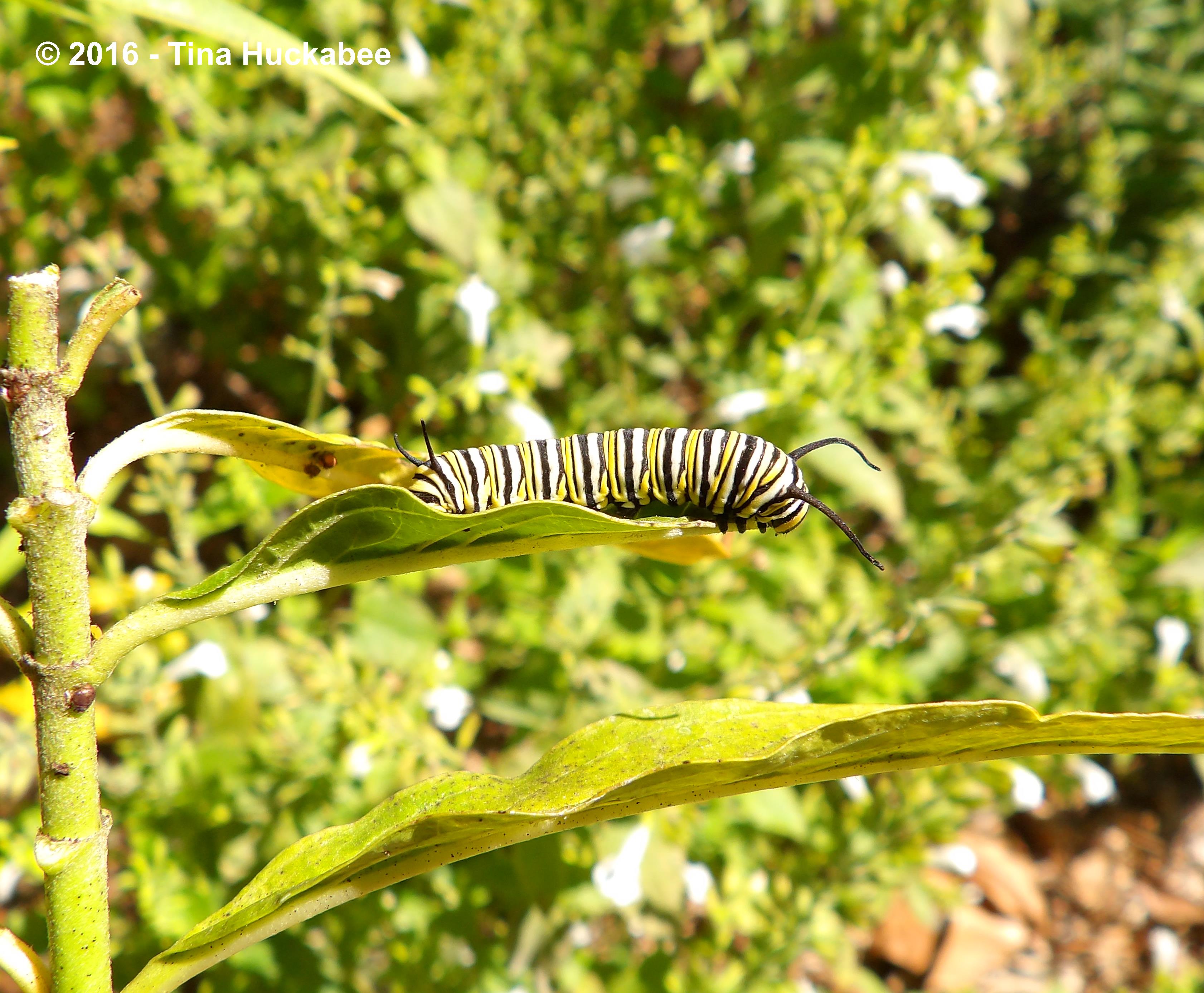 Other butterflies I’ve enjoyed seeing include several Queens, Danaus gilippus, and a couple of Monarchs, Danaus plexippus. The adult butterflies were too fast for me to photograph, but thankfully, caterpillars are slow. I witnessed a Monarch laying an egg and must assume this guy is the result.
