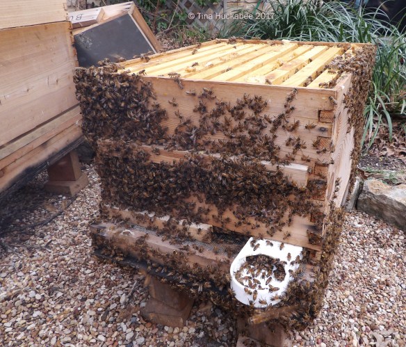 The bees were cranky about the intrusion and our having turned their homes inside-out, but by nightfall, all had marched back into their respective hives.