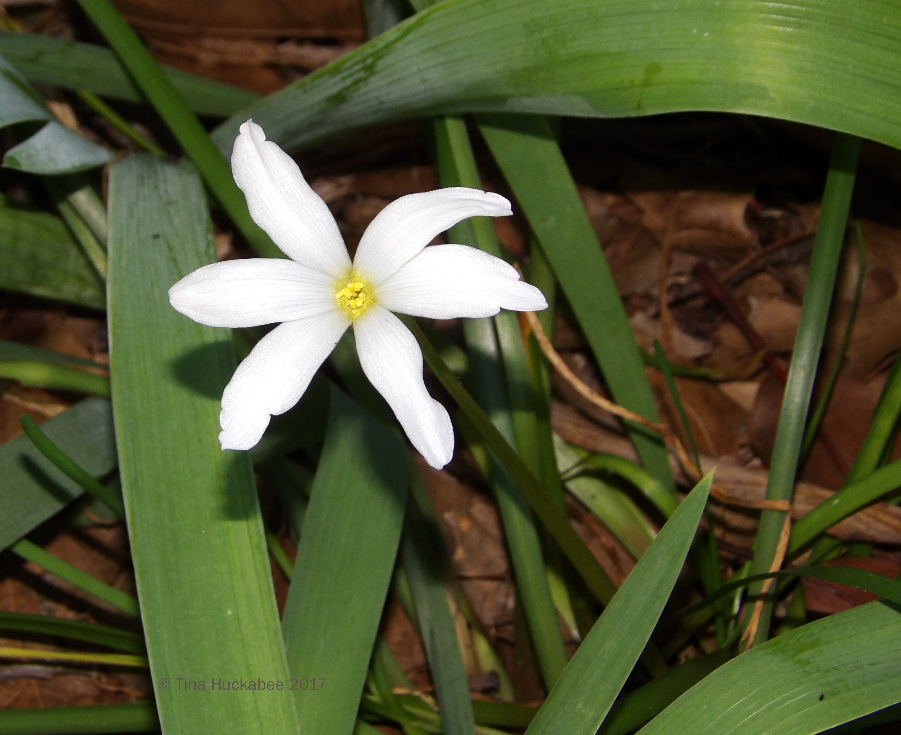 I can tell you that it’s a Zephyranthes, but I’m not sure which one; if I ever knew the name, it’s long forgotten. I purchased some bulbs a few years ago from one of the stellar, locally owned nurseries here in Austin and happily planted away.   Foliage, plus occasional snowy blooms, have made appearances after rains, but over time, the floral representatives of Zephyrus (Greek god of the western wind) disappeared from my gardens.  I attribute the decline to the ever-increasing shade (that again!) and also, to heavy, clayey soil.  Rain lilies thrive in sun and also in situations where the bulbs aren’t disturbed.