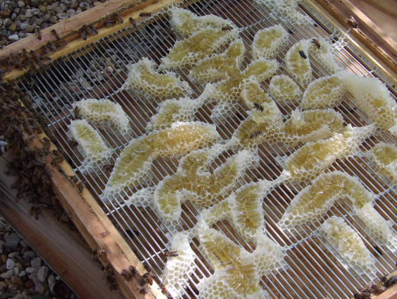 Those silly bees continued to build comb along the queen excluder.