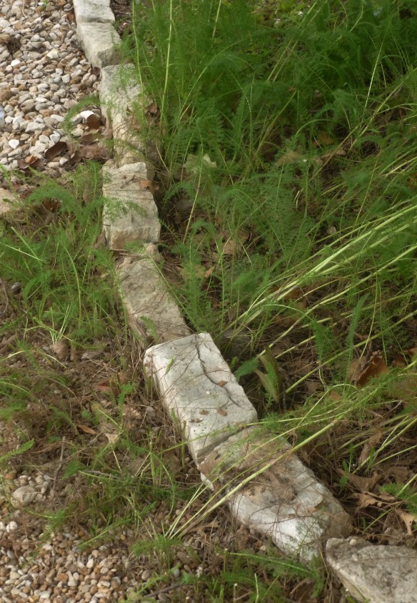 In the above photo, the remains of pruned stalks lie disguarded outside of the garden’s limestone border; you can see new Yarrow foliage emerged on the other side of the limestone. This foliage will be the basis of the ground cover which will flush out during autumn and remain evergreen in winter.