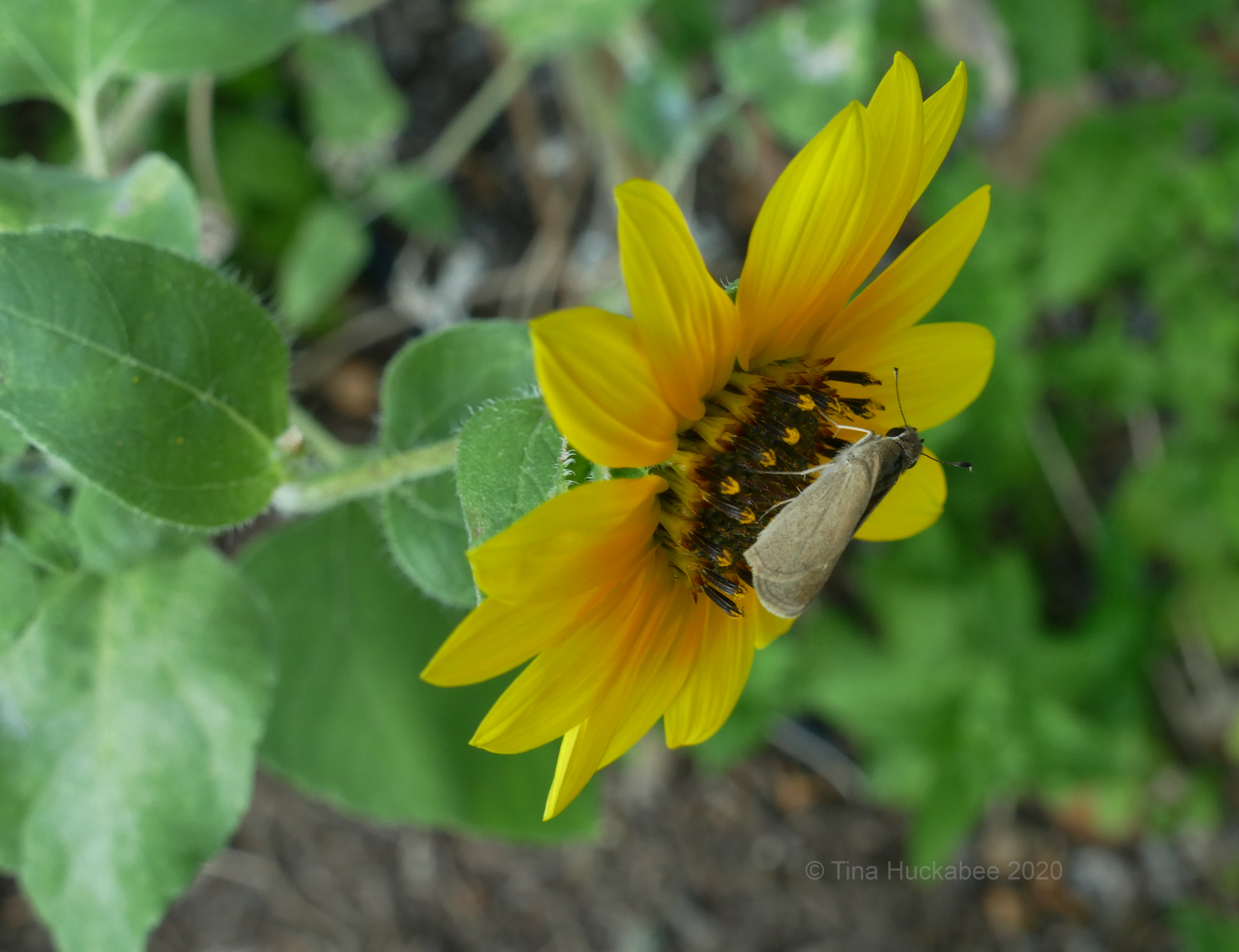 Late in a day, once the sun lessened its August gaze on the garden, I spied this skipper on a sunflower. It wasn’t nectaring, nor did it fly away as I watched. Was it settling in for an evening’s rest? Perhaps. Everyone, even busy pollinators, need their rest.