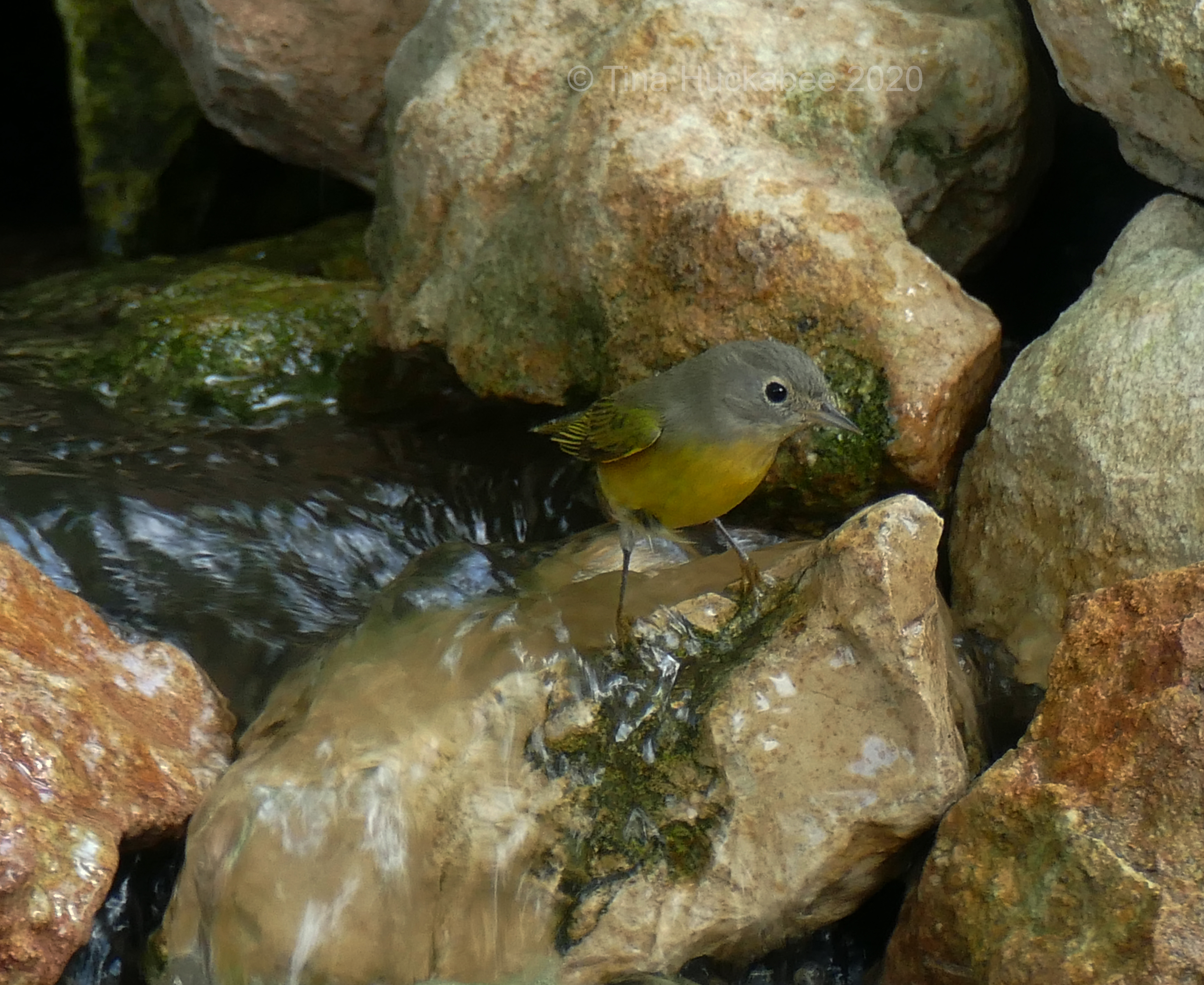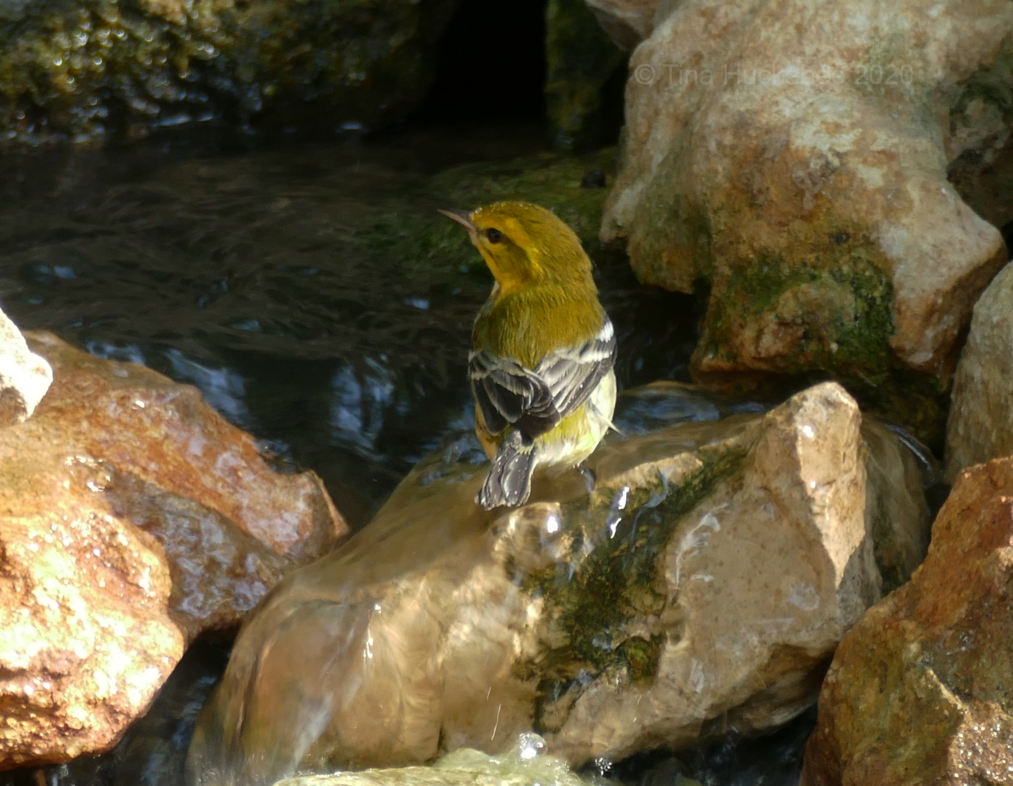 • Thanks. It helps to take many photos…:) Yes, the pond is a huge draw for all kinds of wildlife, though some aren’t quite as welcome as the warblers. Yes, we built the pond and it’s been in action about 11 years. There isn’t really a stream, but the waterfall is a tumble over limestone rocks, with places for the birds to hang out and fluff–which they love to do!