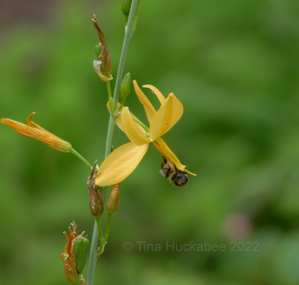Not outdone by the butterflies, bees are still active, too. One of my favorite native perennials is the Texas Craglily, Echeandia texensis. It’s also favored by a variety of pollinator types, including honeybees.