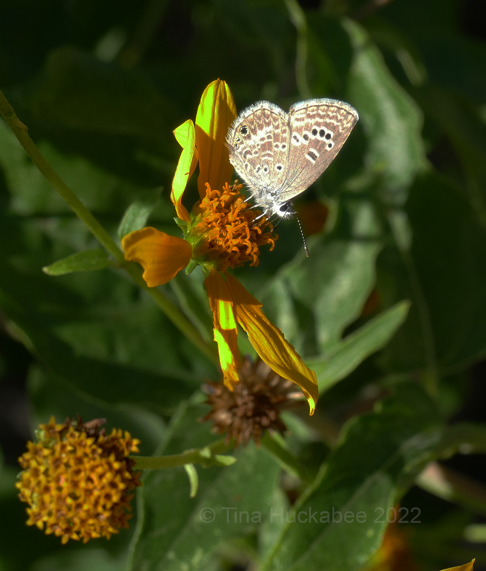 A diminutive butterfly that I’m sure I’ve seen in my garden in past seasons, but I know I’ve seen when perusing through insect resources, is this Reakirt’s Blue, Echinargus isola. I enjoyed the flitty antics of several individuals before the rainy period set in.