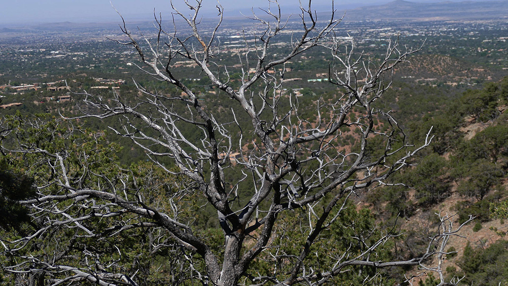 Spidery limbs act as a buffer between and mountain, and human development (Santa Fe) below.