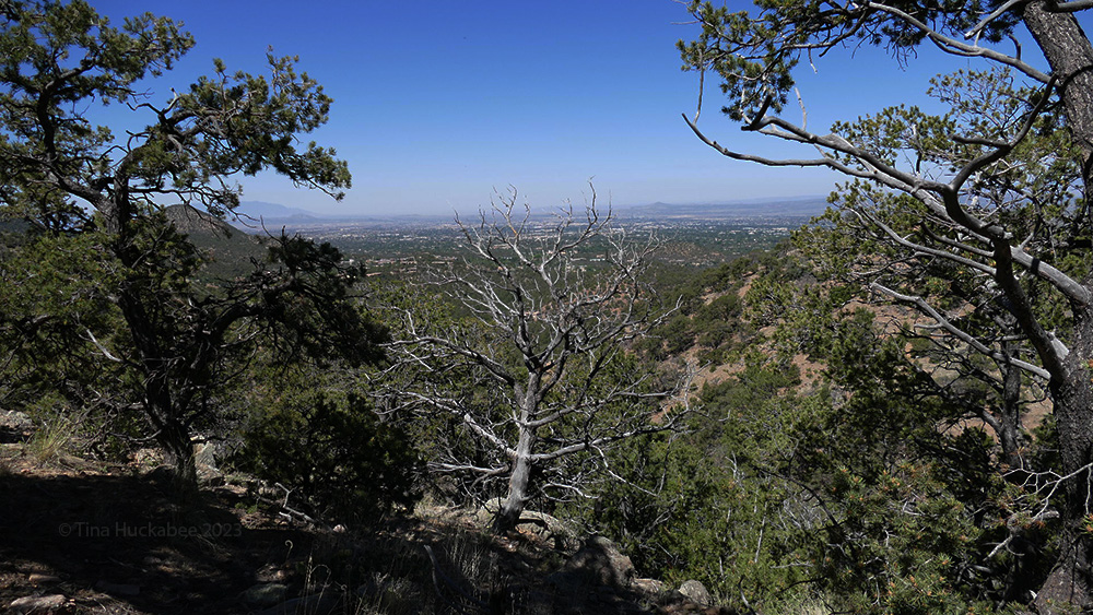 I’m recently returned from a week’s reprieve out of the Texas heat, having visited the Land of Enchantment–New Mexico. I’ve been to New Mexico a number of times now: sometimes it’s a museum and cultural events vacation, sometimes it’s a hiking vacation. This trip was in the latter category: a hiking-with-great-meals-afterward vacation. We visited Albuquerque, then traveled, with a break for hiking, through the Sandia Mountains, ending in Santa Fe.