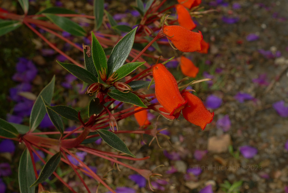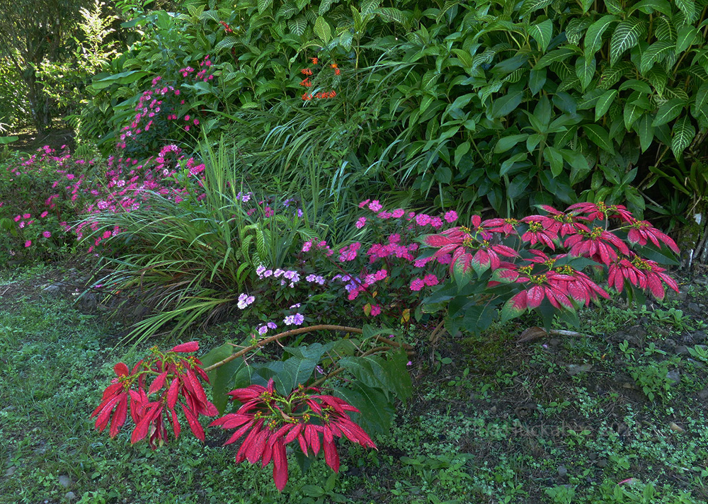 I love that photo too and I wish I knew what the orange bloom is. It reminded me of a penstemon, with its tubular form. The purple in the background are impatiens and they grew with abandon at the lodge we stay at in the Orosi Valley.