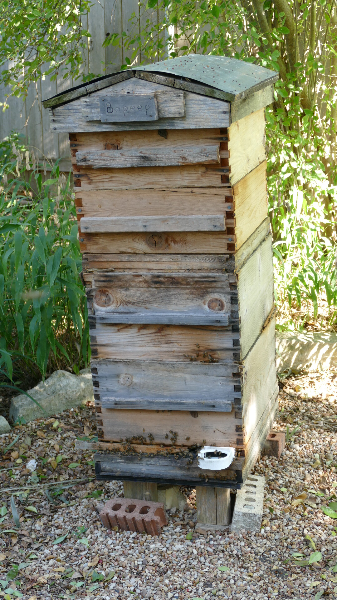 In early June, at the first hive check of the month (we check our hives every 2-2.5 weeks from late February through October), we realized that there was no activity around our hive, Woody. No bees were flying in, no bees were flying out. The hives sit at the back of the garden and I don’t garden-putter much in that area, so day-to-day, I don’t pay close attention to the honeybee goings-on.