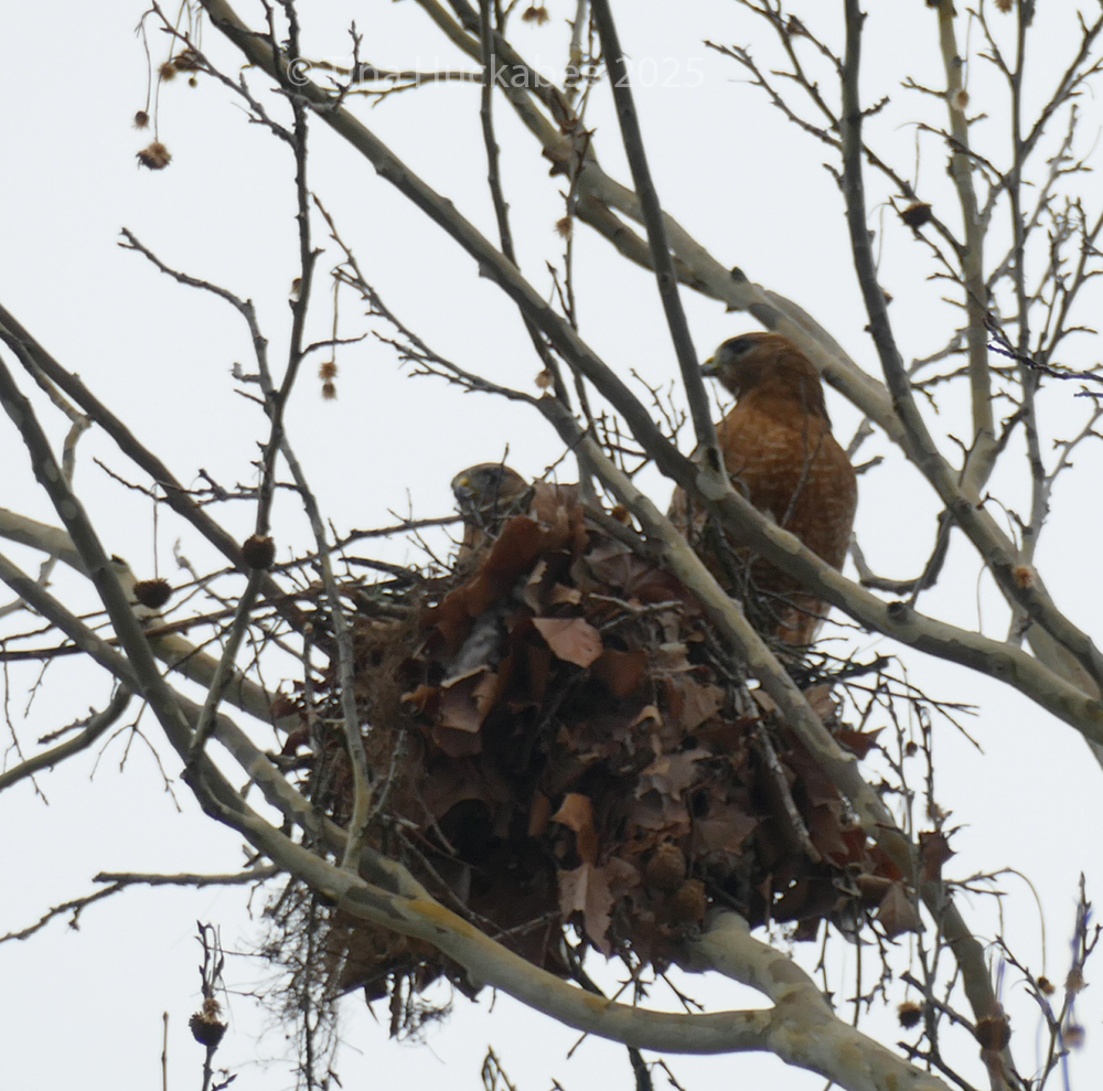 Red-shouldered are common, but it’s certainly wonderful to see them–they are really gorgeous birds. I’m assuming it’s been a squirrel’s nest. I know it was there in the past, but truthfully, I’ve never paid much attention to it. Once the sycamore leafs out, I won’t be able to see the nest clearly, if at all, but will see the hawks fly to and fro.