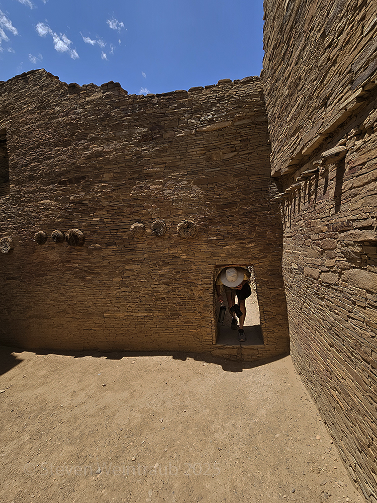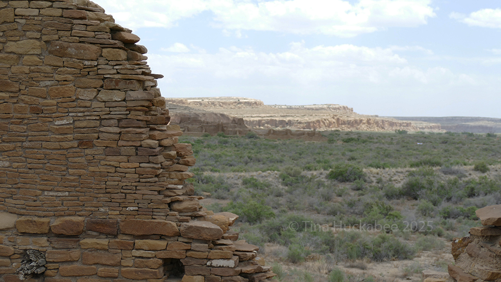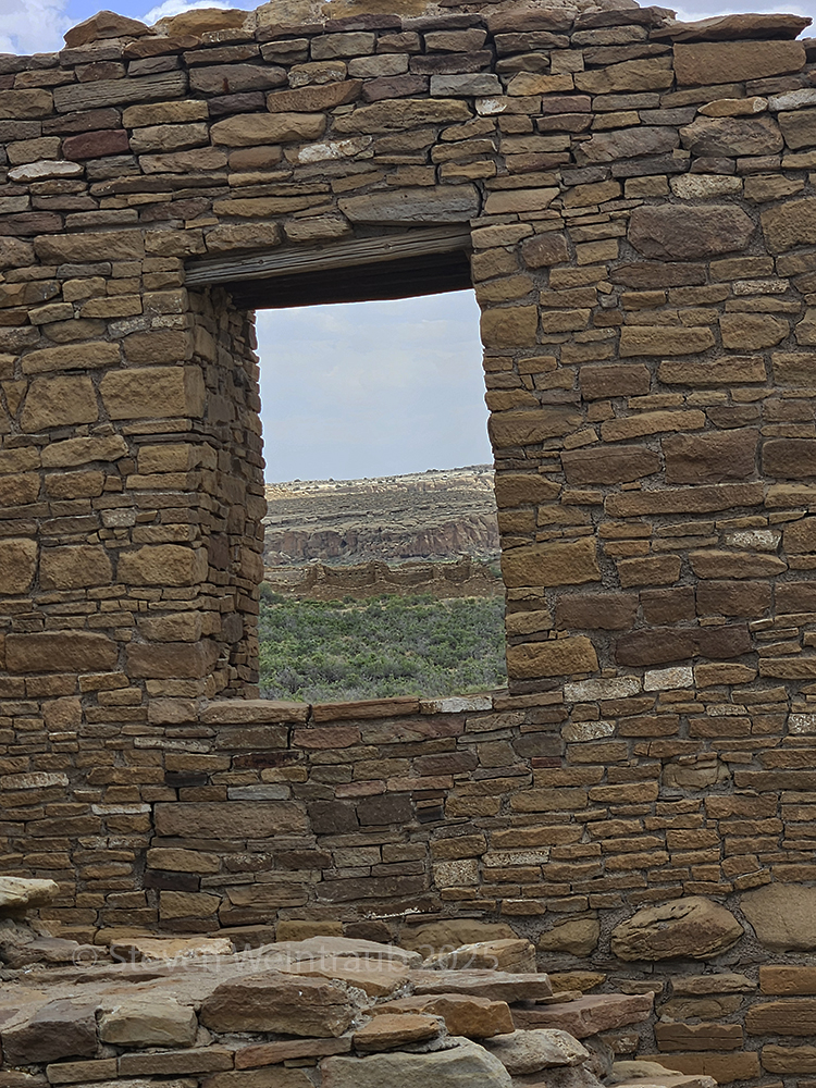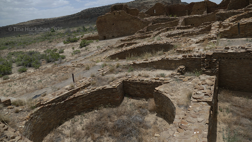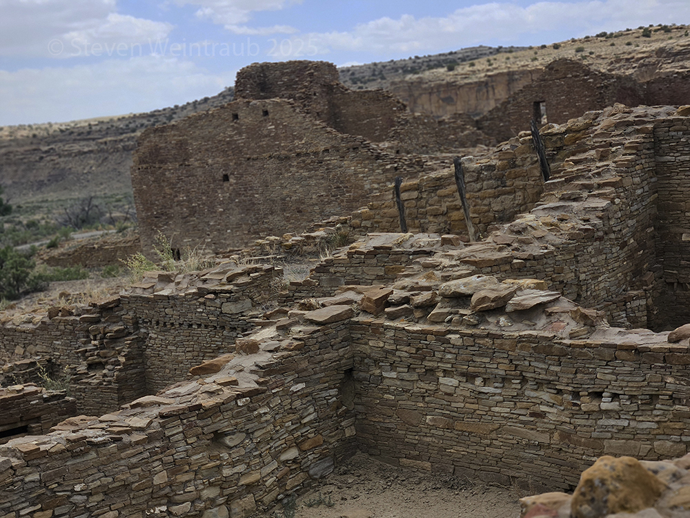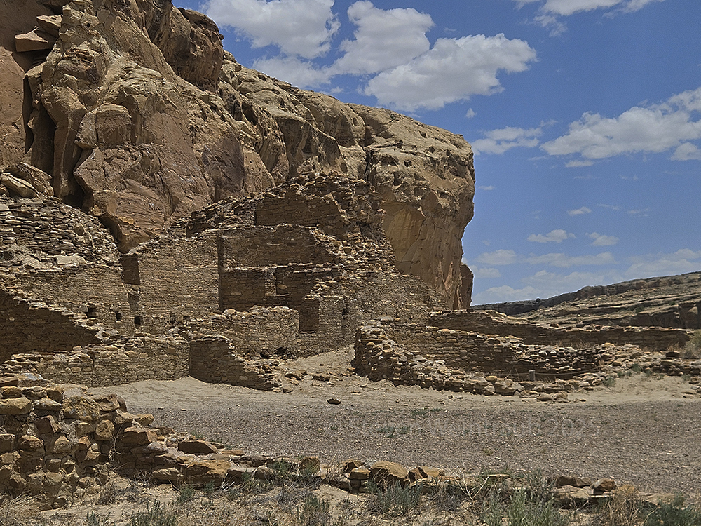 In June we spent time in New Mexico, re-visiting favorite spots and adding a couple of new adventures to our itinerary. We’ve always wanted to visit Chaco Culture National Historic Park and finally made it happen. Chaco Canyon is located in the northwest corner of New Mexico, bordered on three sides by mountain ranges: the Chuska, the San Juan, and the San Pedro. The canyon was created by the Chaco Wash in the San Juan Basin which is part of the Colorado Plateau. All that geography is very interesting of course, but the bottom line is this: this remarkable place in North America is kind of in the middle of nowhere.