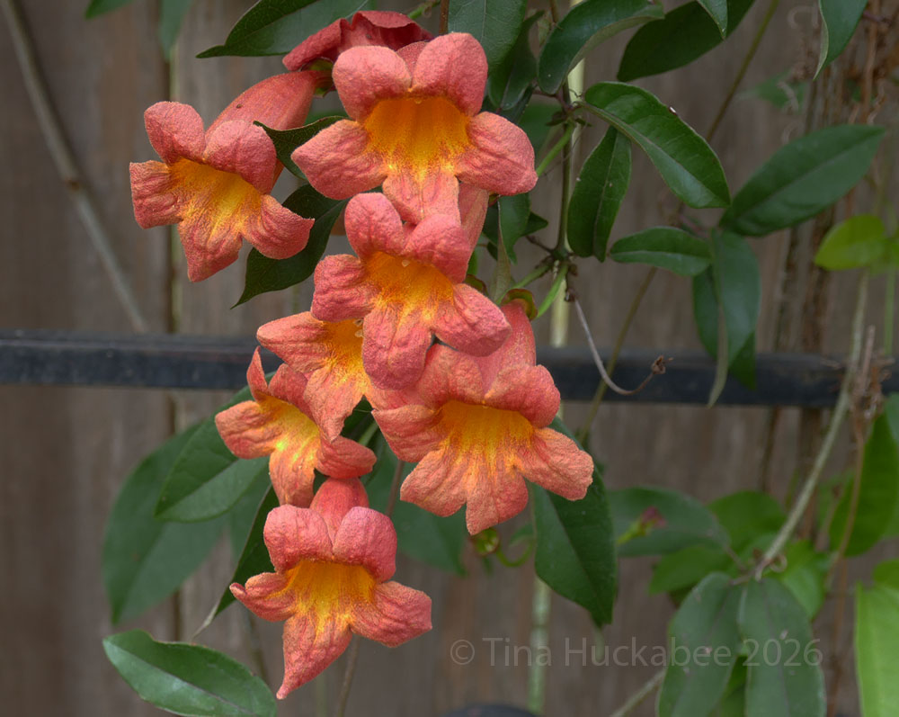 Crossvine, Bignonia capreolata, is an early blooming vine here in Central Texas. Though the flowers were ready for them, pollinators were scarce; it was too early and too flush with the promise of rain. Orange-yellow flowers are open for pollinators and will bloom, at least for a time. In my garden, native bees are prime visitors to these pretties.