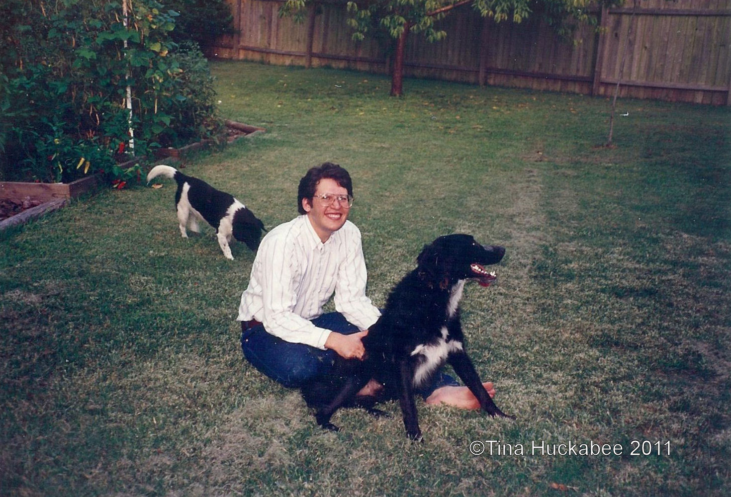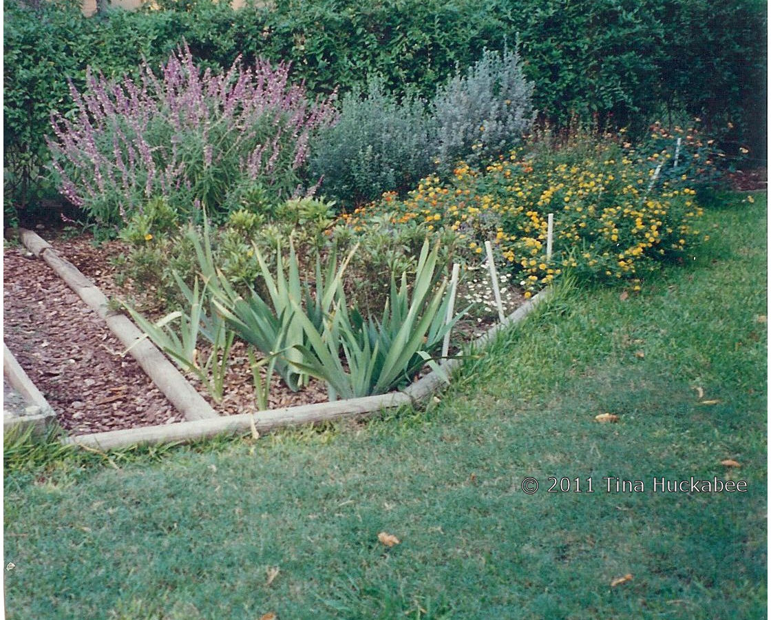 We moved into our home in 1985. We were newlyweds, starting our careers and collecting dogs and cats along the way. The house seemed huge (it’s not) after college dorm rooms and apartment living. These photos are from the years 1987 through 1992. I inherited a property which consisted of two large areas of turf (front and back yard), two Arizona ash trees (Fraxinus velutina), an Eastern sycamore (Platanus occidentalis), two Chinese tallow trees (Sapium sebiferum), one bed of an unknown iris, unofficially called Shoshana’s iris, several hybrid roses scattered about the back yard and some Jackson & Perkins roses called, “Simplicity” (one of which is still alive). Mostly, though, there was grass. Lots of St. Augustine grass.