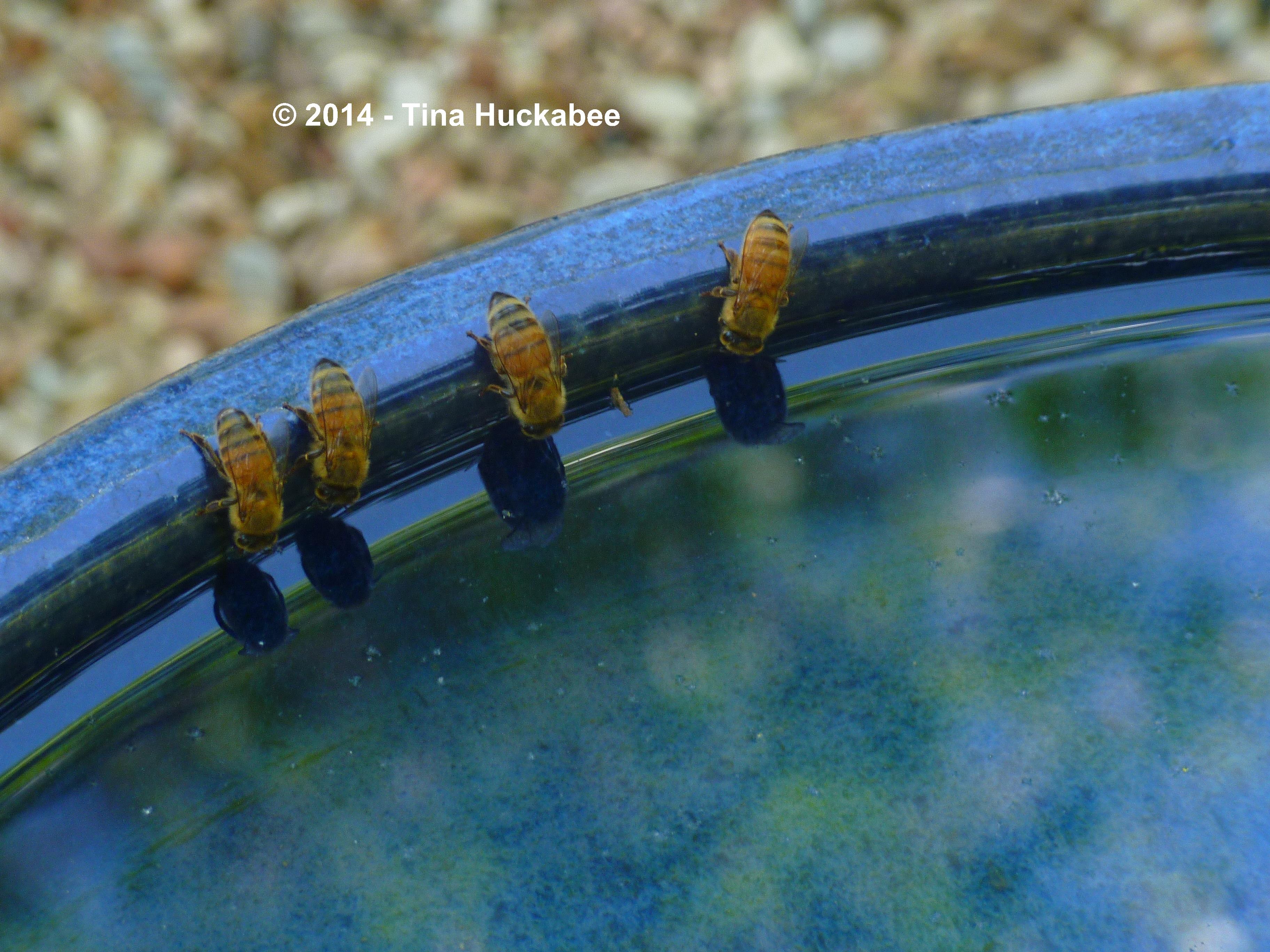 the honeybees regularly visit my bird baths, especially my blue bird bath. No matter what time of the day, there are always some gals having a drink and socializing. Sometimes, they’re drowning or drowned. I rescue those I can, but there’s not much I can do about the others. Sniff.
