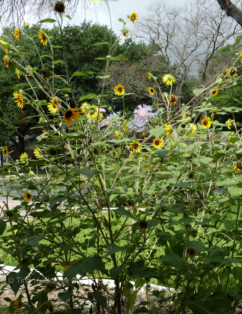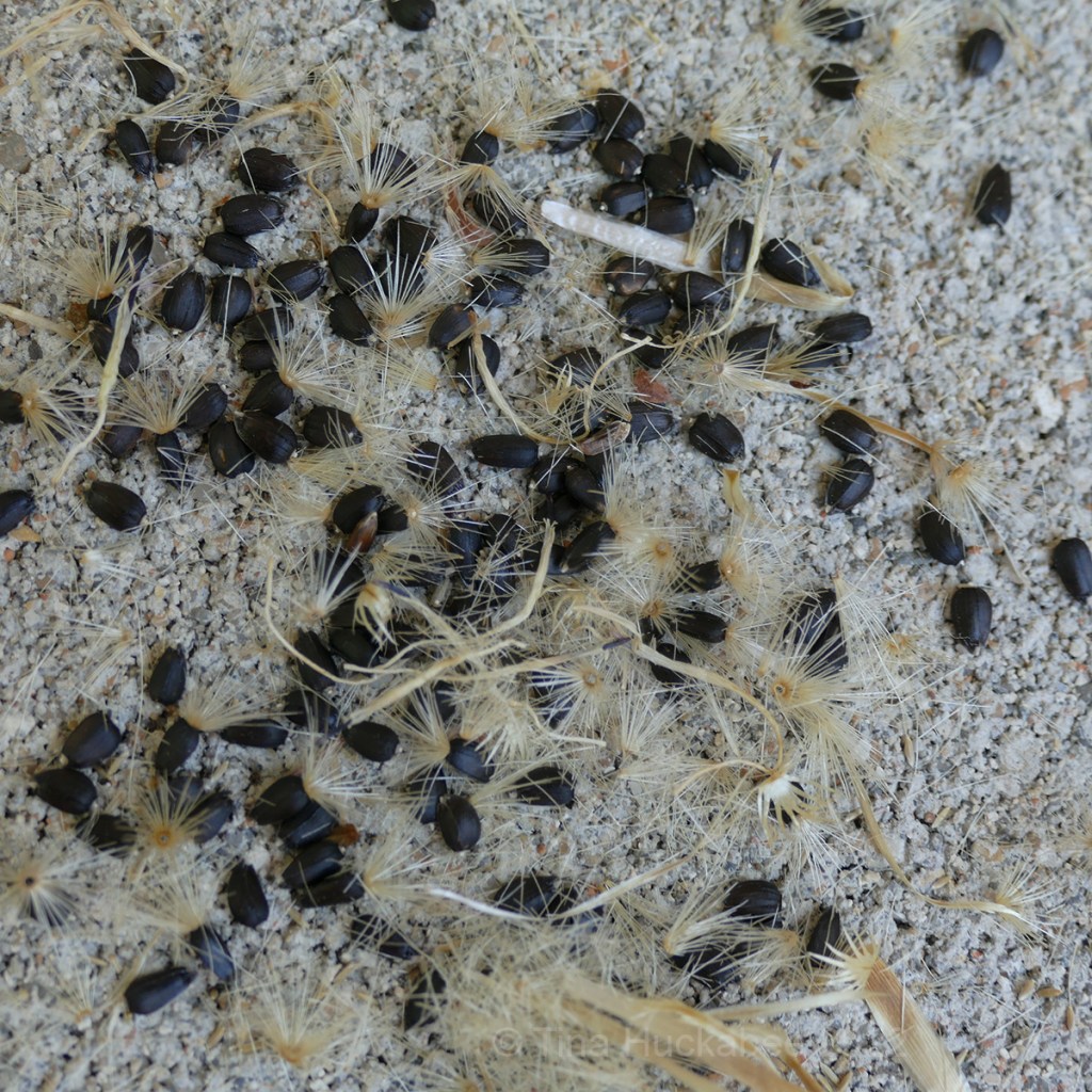 Small, oval seeds are buried in the fuzzy center of the flower, released with a strong breeze or by working their way out of the center and falling to the ground. There were plenty of House Finches, Lesser Goldfinches, House Sparrows, and Carolina Wrens who enjoyed these seeds. The birds were skittish and I wasn’t particularly patient at getting photos, so I never managed a decent shot of any Basket seed-munching birds, but they will spread the Basket goodness. Besides in my own garden, I expect these seeds will produce plants throughout and beyond the neighborhood.