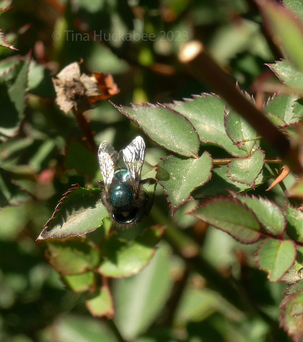 These are such gorgeous bees! They’re fast flyers though and always on the move, which is challenging for clear photos. As I observe and attempt to photograph, these bees are blue flashes, sparkling in the sun.