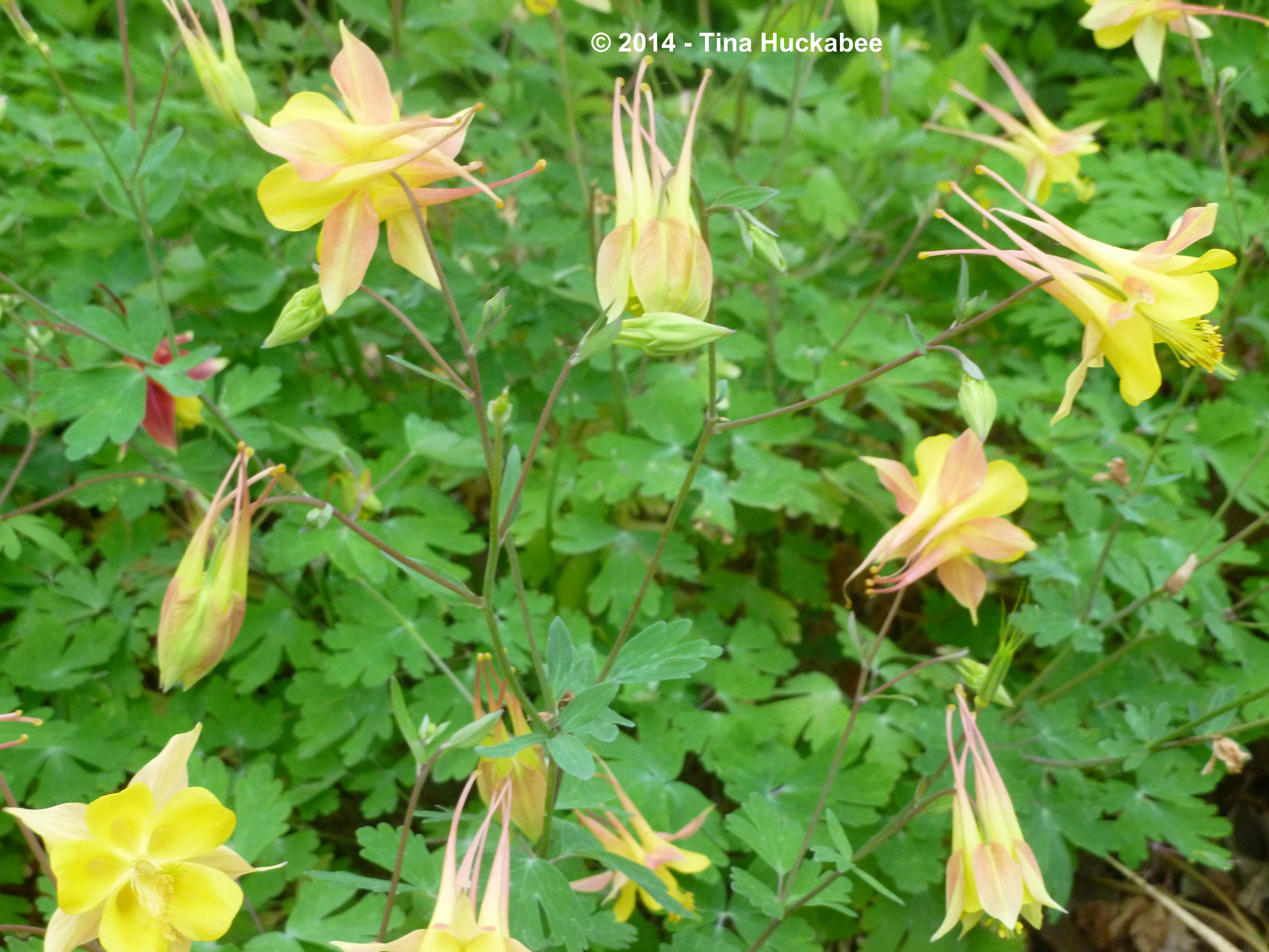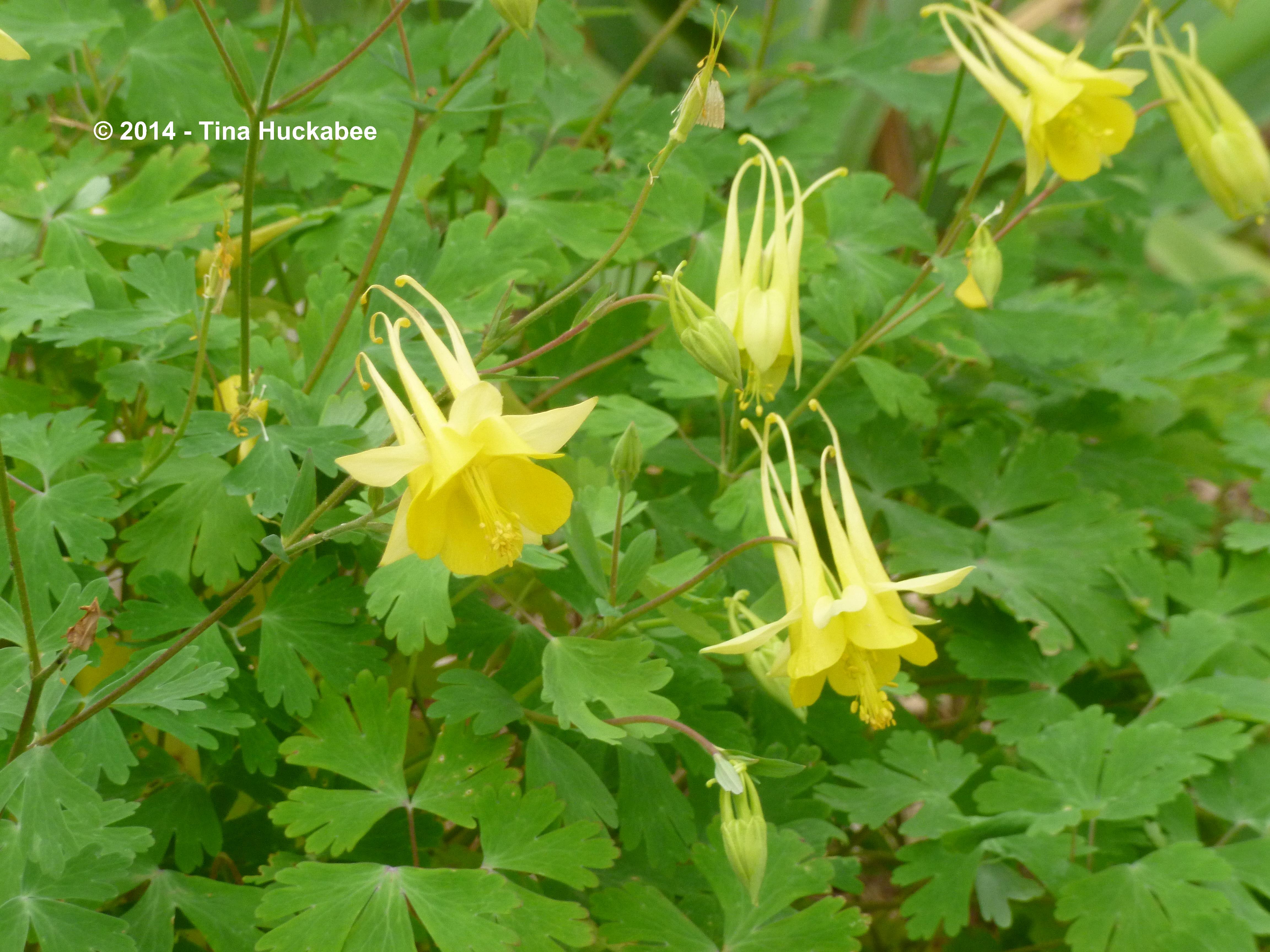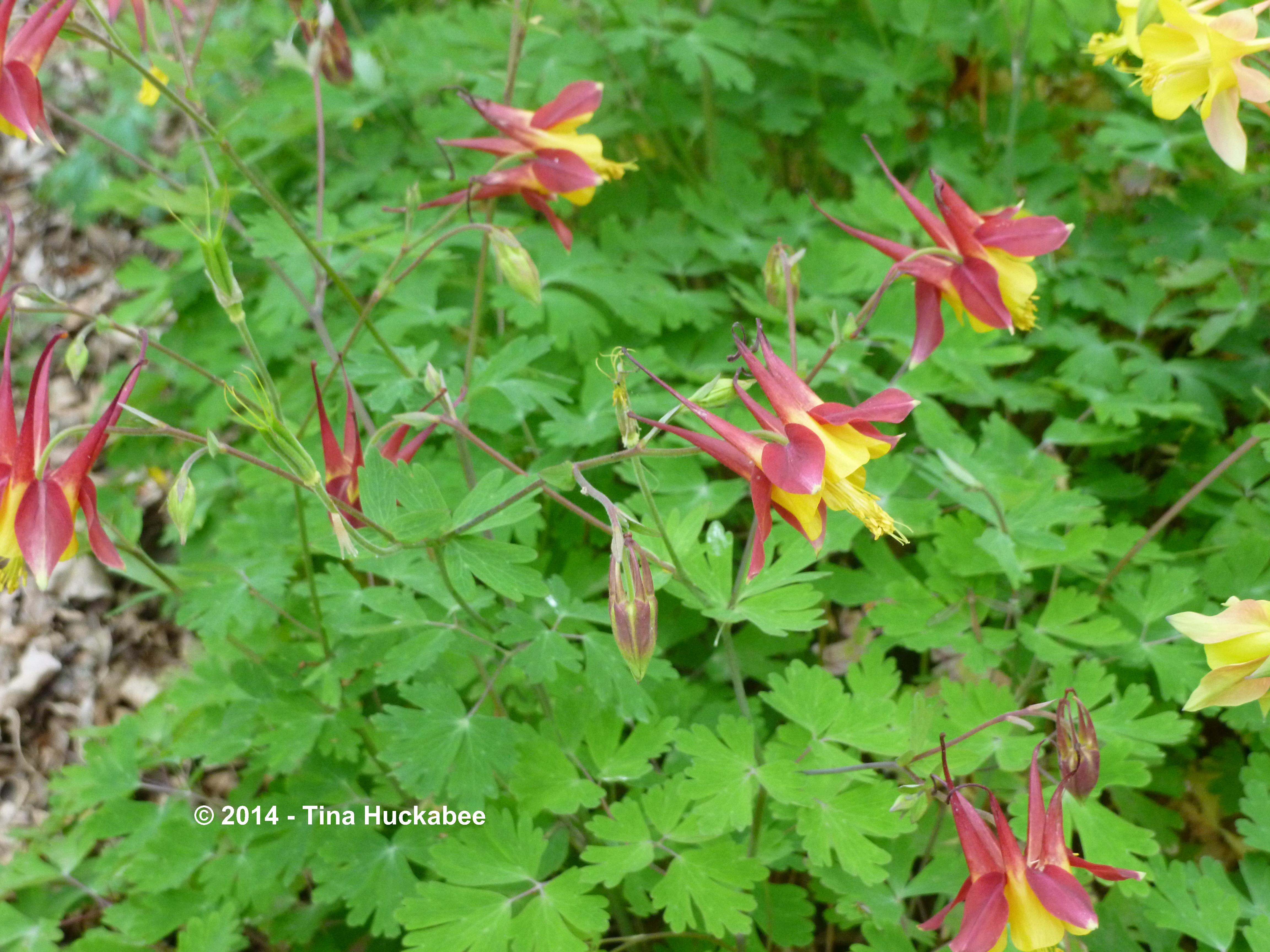 This sweet thing is a hybrid columbine, a cross between the native Aquilegia chrysantha and another native, Aquilegia canadensis.
