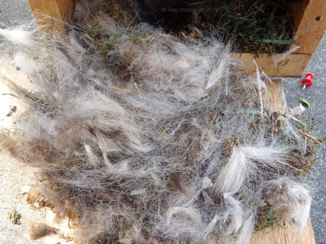 After a few days of quiet at the bird house, I wanted to see exactly what the Titmice had used to build their nest, so opened up the bird house and discovered that they’d made far more progress than I’d realized.