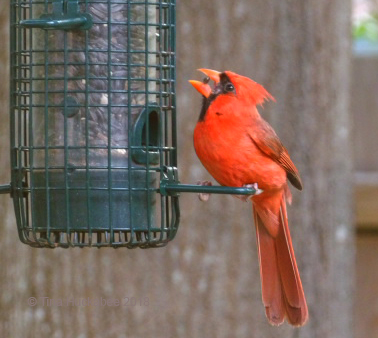 This brilliant male Northern Cardinal, Cardinalis cardinalis, brightens the landscape with Red plumage whenever he visits my garden.