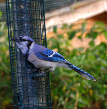 I dole out peanuts every morning and the Blue jays love them! Each morning, 7 or 8 jays take turns plucking peanuts from a ceramic bowl affixed to the fence. Additionally, a Blue jay pair nested in my Mountain Laurel tree in May and June, so I’ve enjoyed watching the parenting care in raising the brood and the antics of the fledglings. The newbies have finally learned how to take their own peanuts for breakfast, rather than fluttering their wings in hopes that mom or dad will share peanuts.