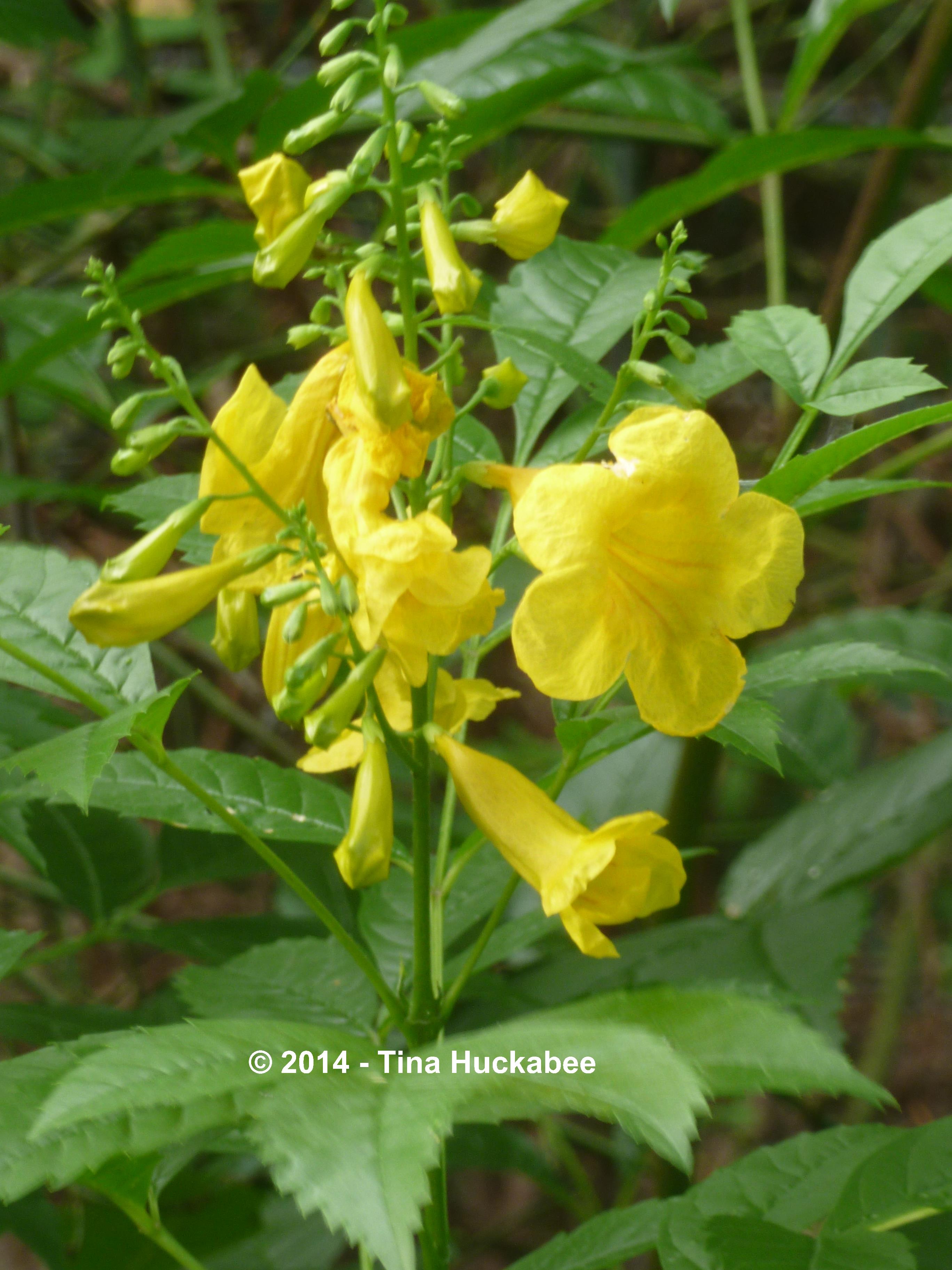 My Retama tree, Parkinsonia aculeata, has bloomed non-stop since May. The flowers are borne in clusters and bees buzz all around.