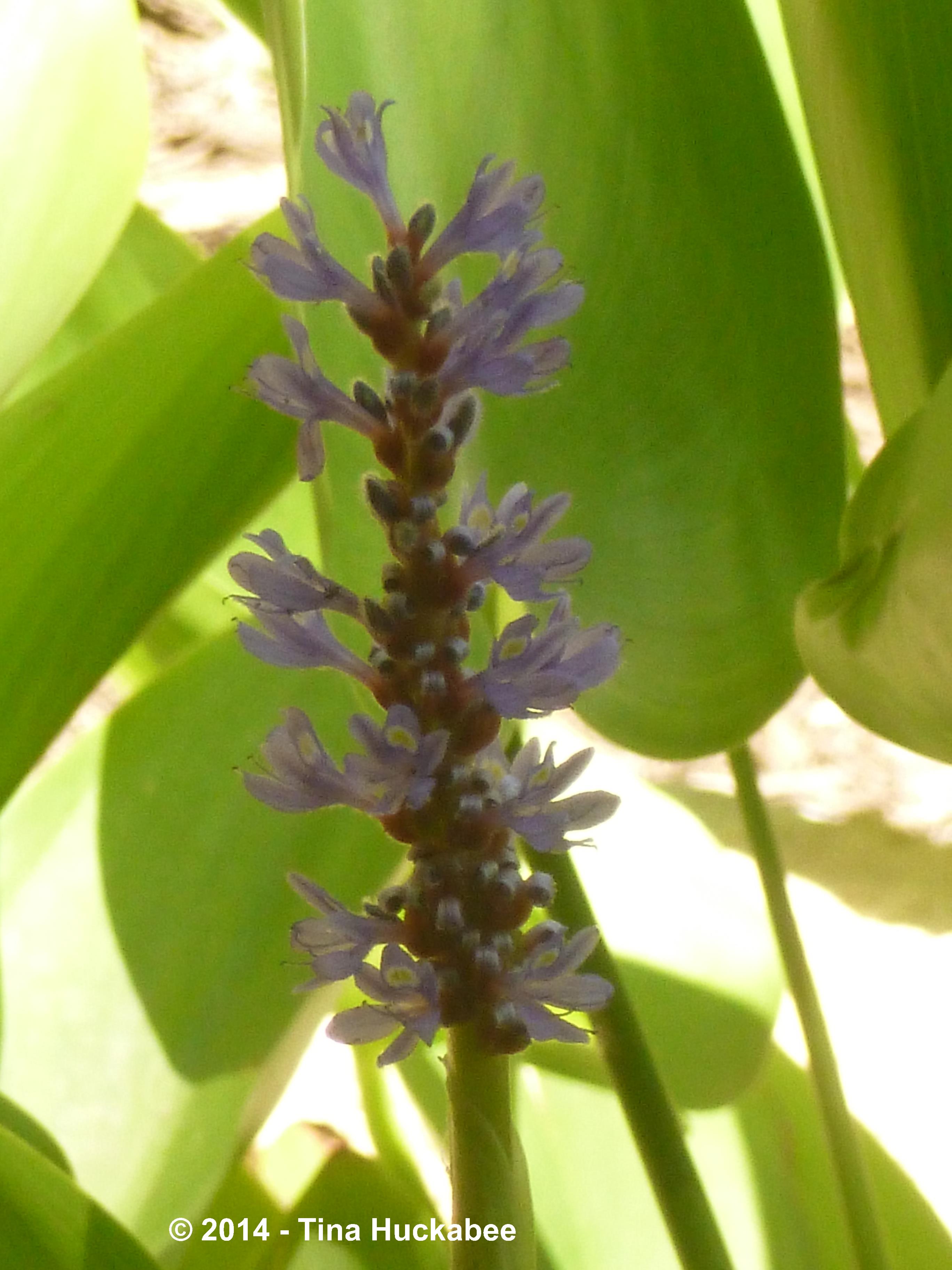 A pond colleague, Pickerel rush, Pontederia cordata, sits in the bog section of the pond.