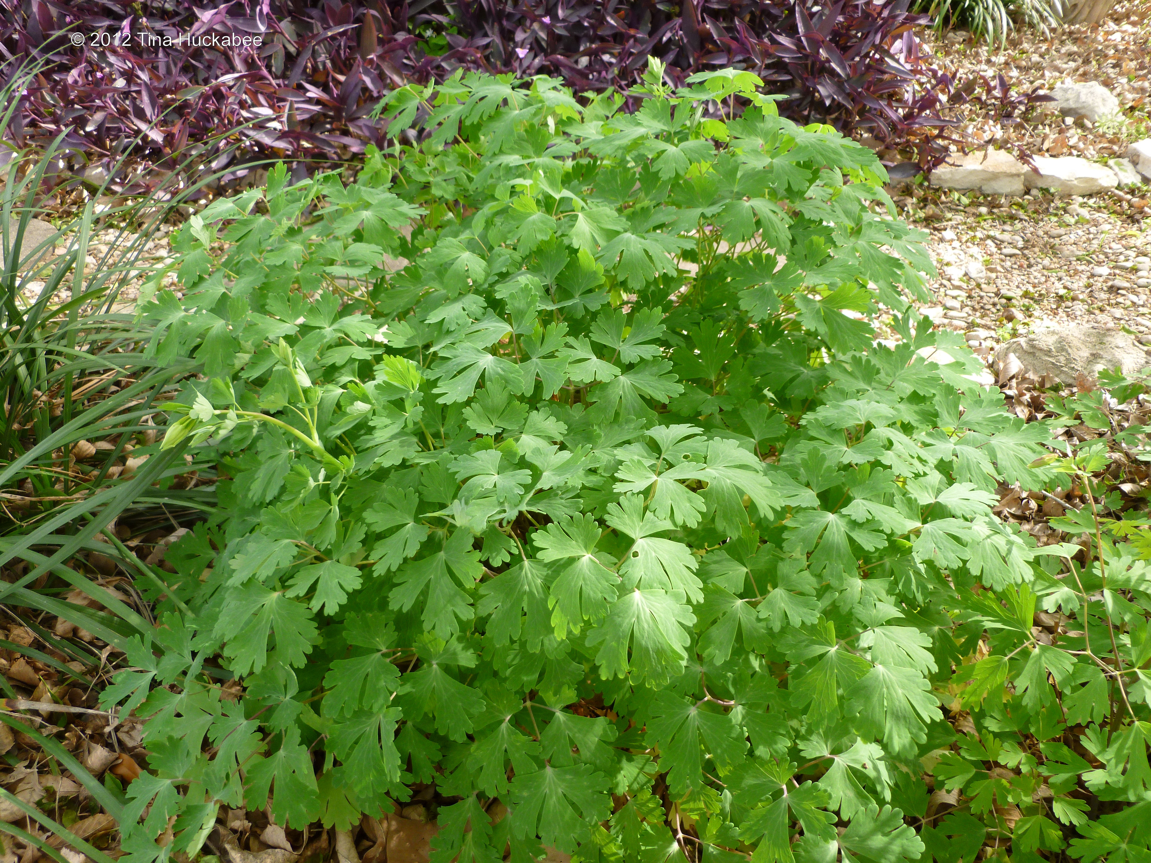 Columbines are easy to grow in Central Texas. They are reportedly deer resistant and are most beautiful during the cooler time of year (October-May), reaching the zenith of their beauty in March and April. I’ve seen them grow in a variety of soil conditions, but Columbines prefer a moderately moist, well-draining soil. Columbines are considered a drought tolerant perennial and in my personal gardens, I don’t water these plants more than twice per month in our dry, hot summers. During the summer of 2011, which was record-breaking hot and dry, my Columbines limped along. I don’t believe that any died but they definitely struggled with the heat. Most of mine also suffered leaf burn, too. While that’s not unusual for Columbines in Texas heat, I noticed more damage after last summer.