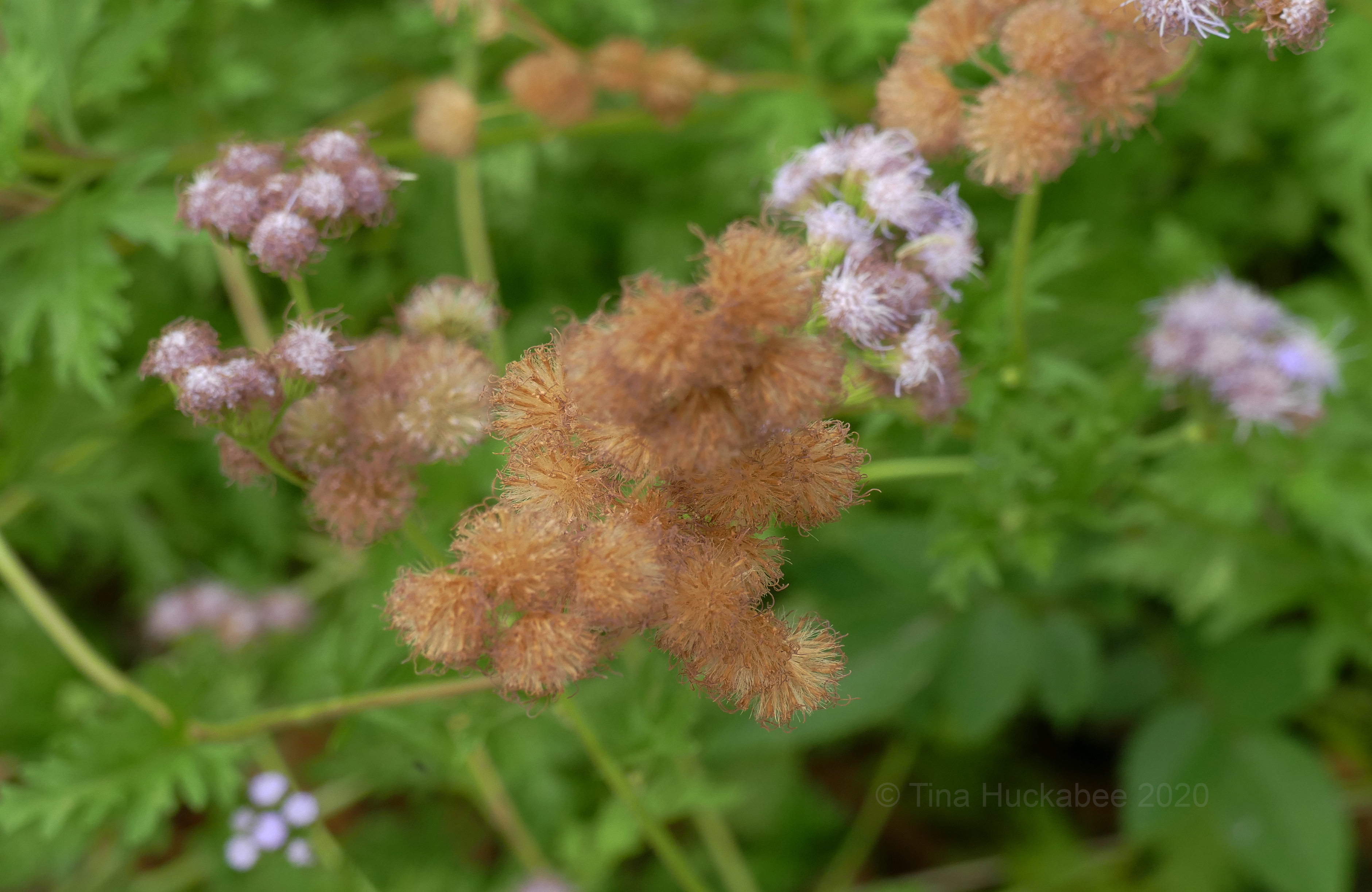 These are but a few of the pollinators working this popular flower during the zenith of its bloom season. Not shown, but definitely groupies of Gregg’s Mistflower, are multitudes of tiny native bees (which never seem to perch and pollinate, but must do?) and other too-quick-to-catch-with-the-camera butterflies. This lovely plant will bloom and provide for pollinators until a hard freeze renders it dead for the season. Fuzzy blooms then turn a warm toasty color and over time, mistflower fluff drifts with the breezes.